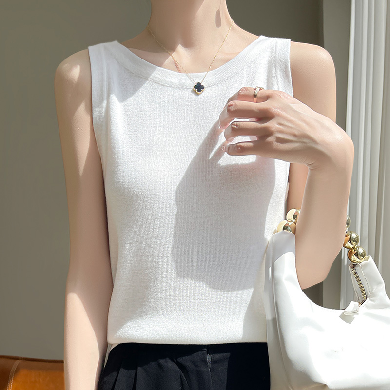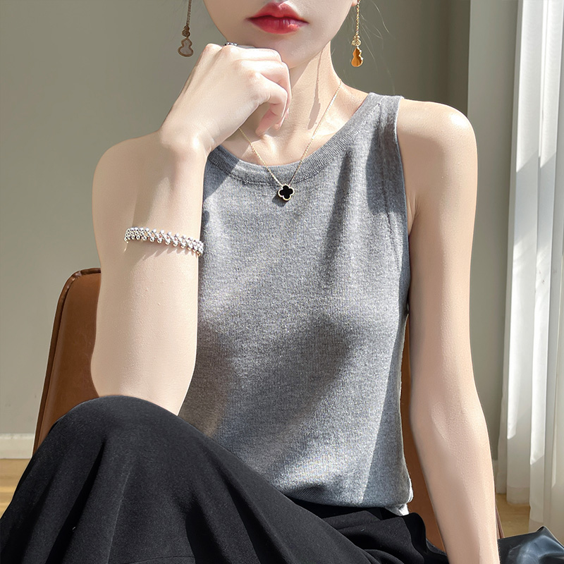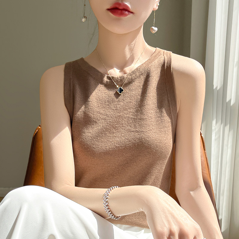 软糯遮肉一字圆领针织吊带背心女超细精仿羊毛内搭打底衫无袖上衣