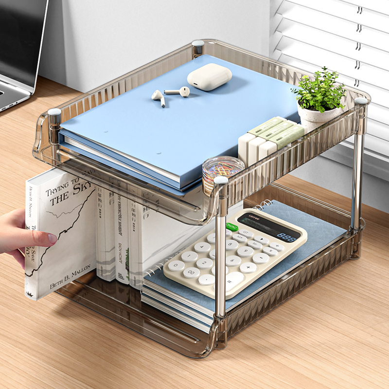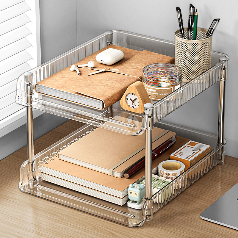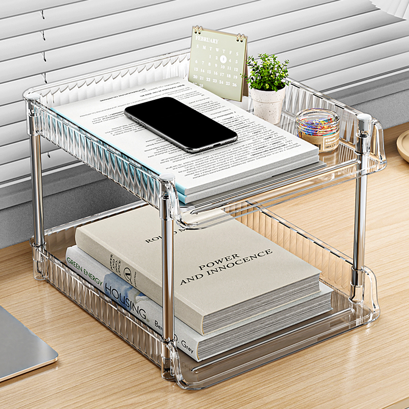 透明桌面文件收纳架双层书本置物架工位办公室亚克力a4纸整理盒子