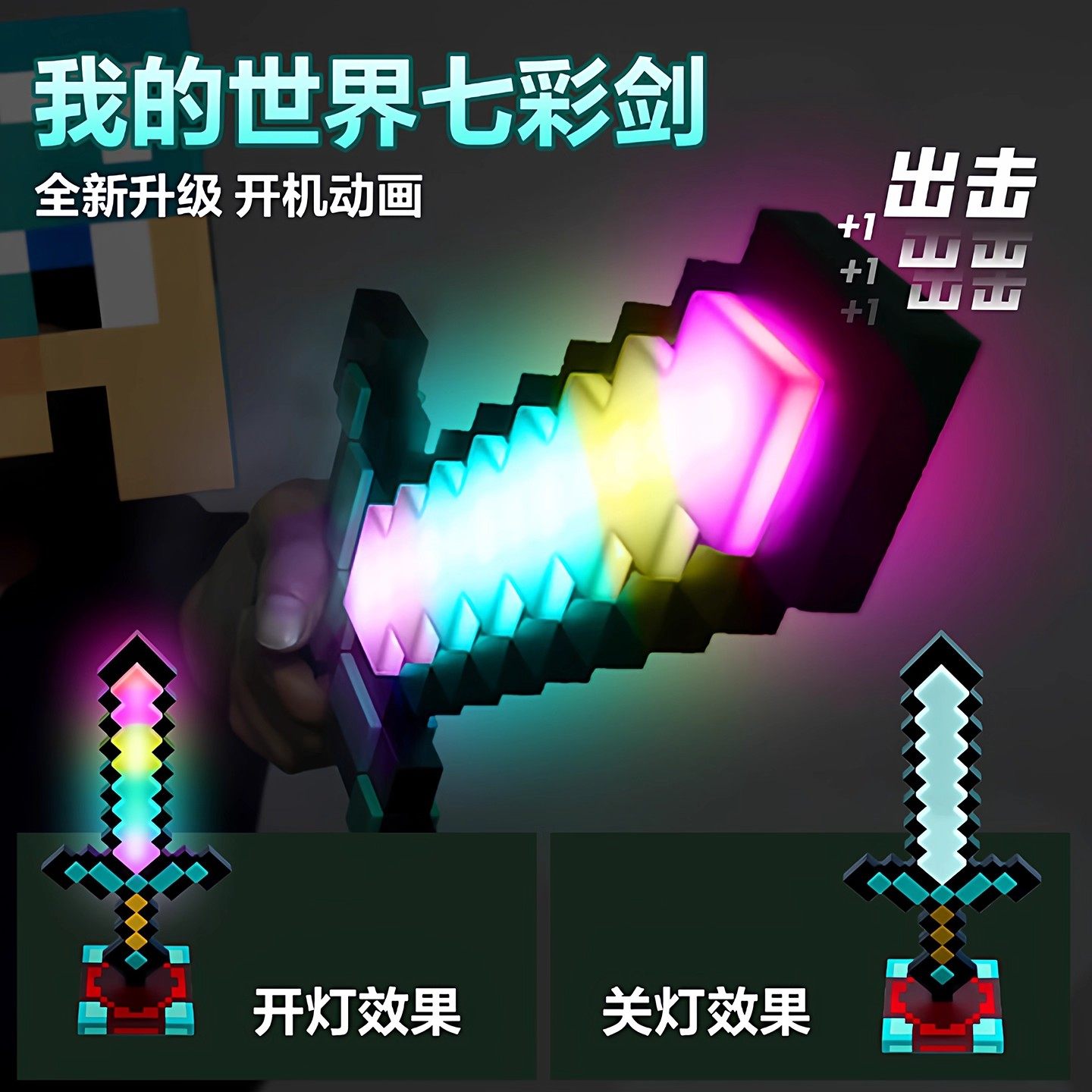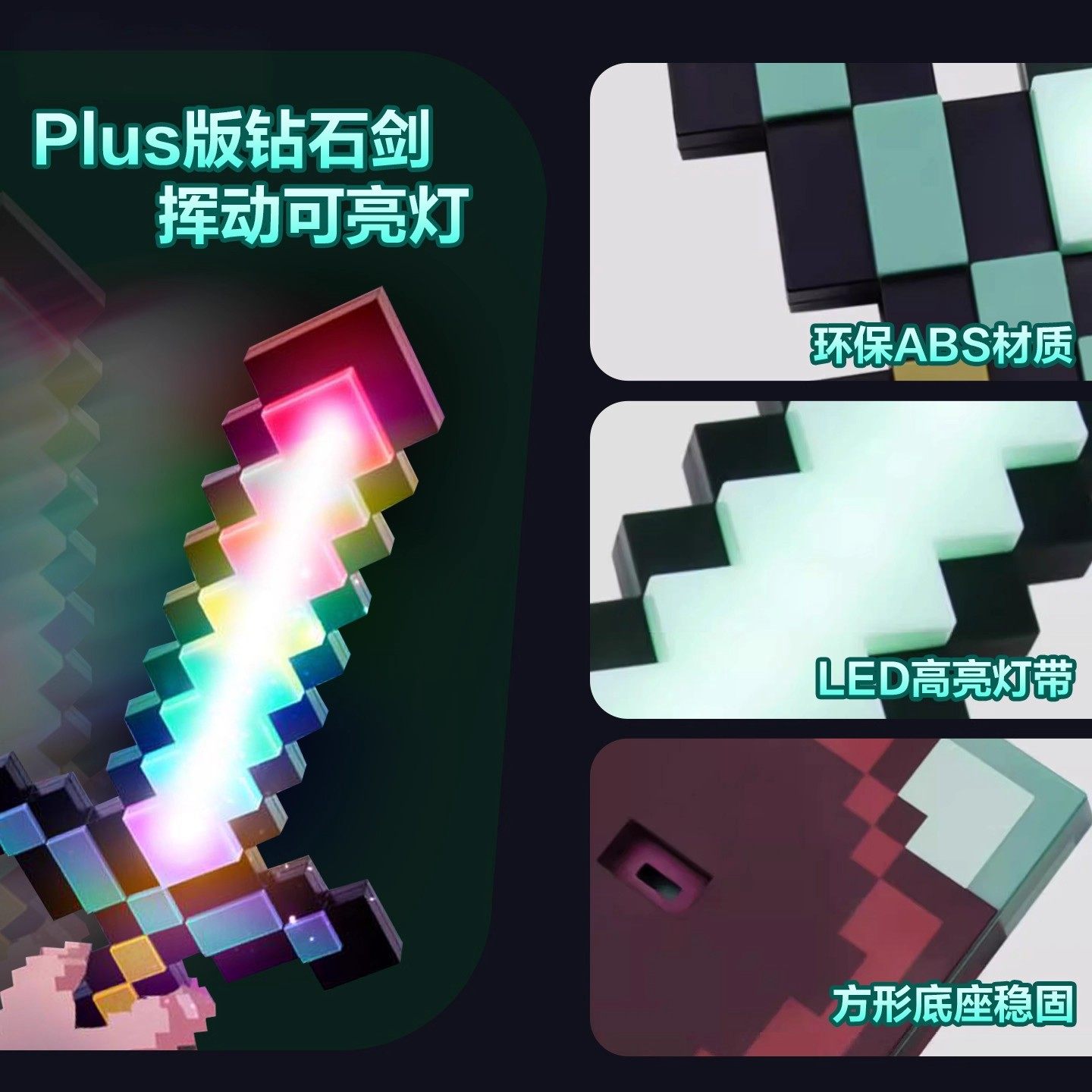 我的世界周边模型男女孩发光宝剑像素MC钻石剑儿童解压玩具下界