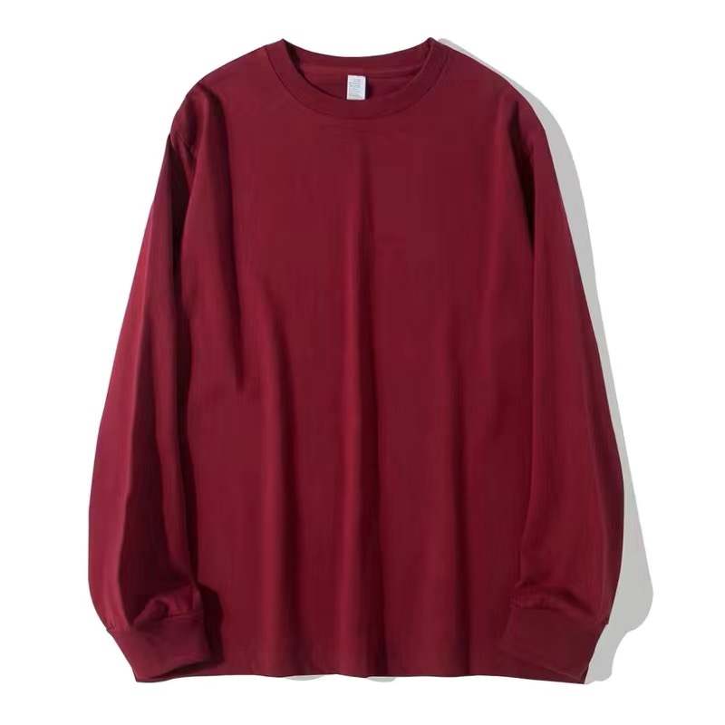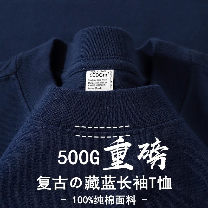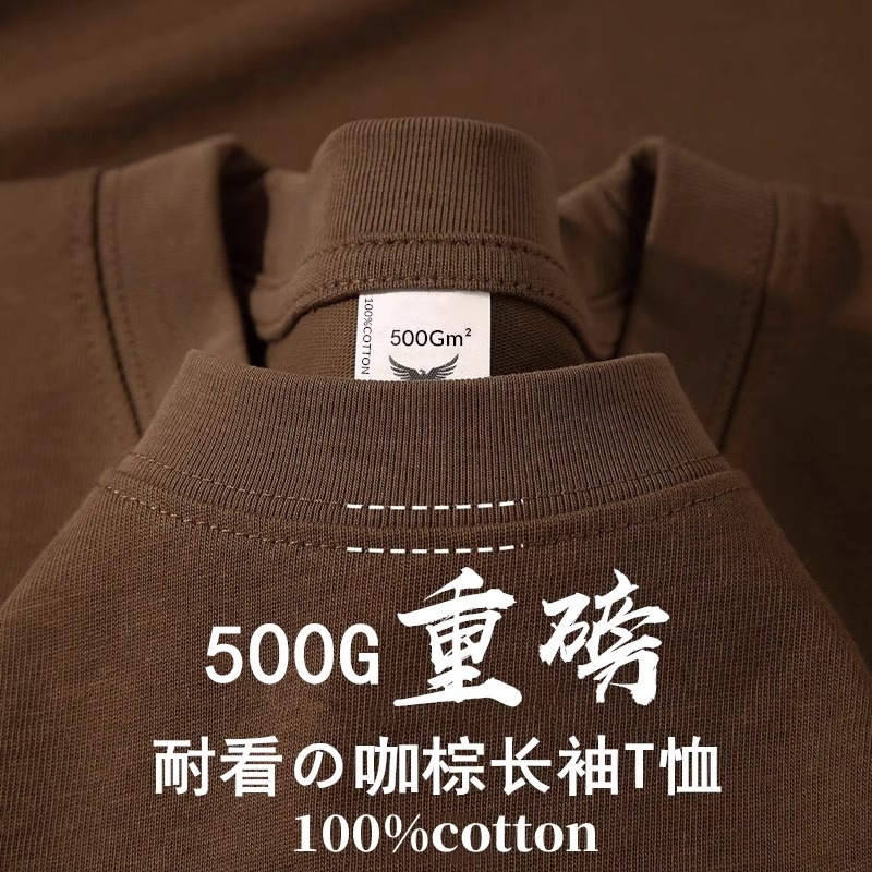 500G重磅纯棉美式小领口长袖t恤男女螺纹袖口卫衣厚实大码打底衫