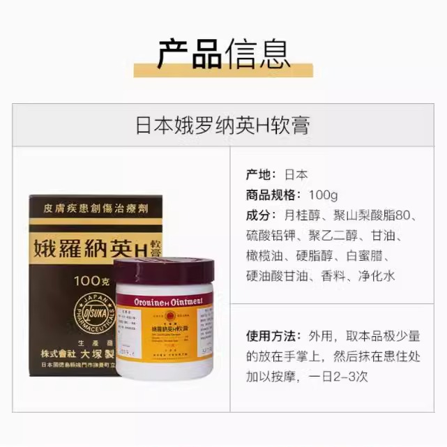 3盒 日本 大塚制药娥罗纳英100g h软膏冻伤皮肤 烫伤冻疮膏雪花膏