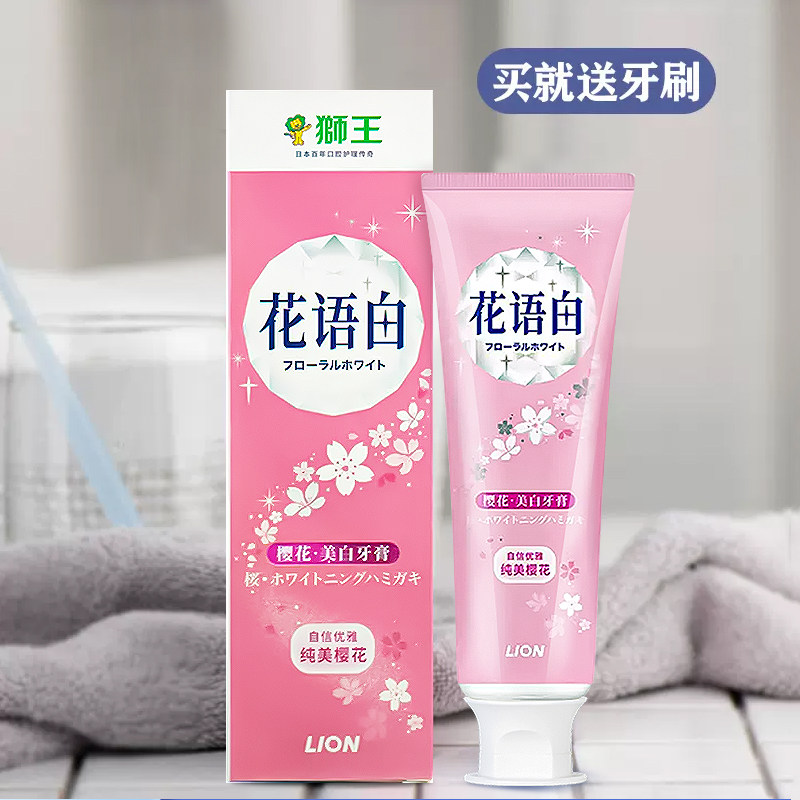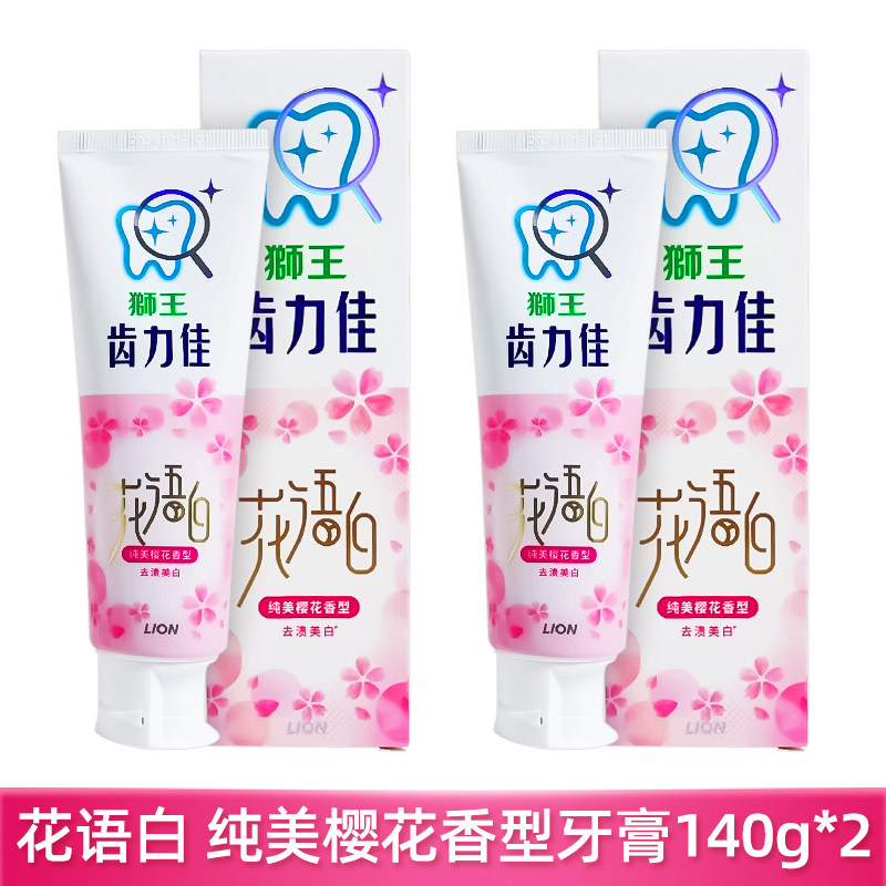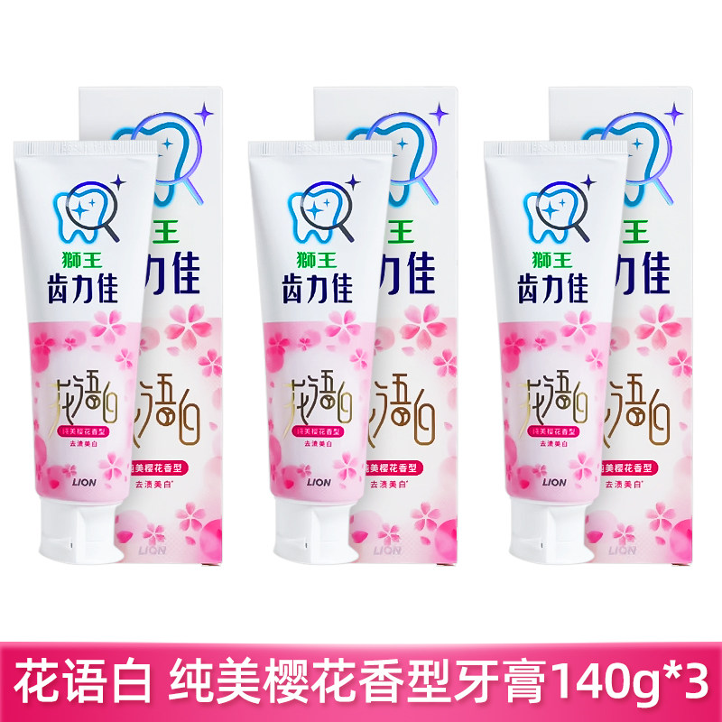 狮王牙膏樱花美白牙膏花语白含氟女生去牙渍学生防蛀牙膏口气清新