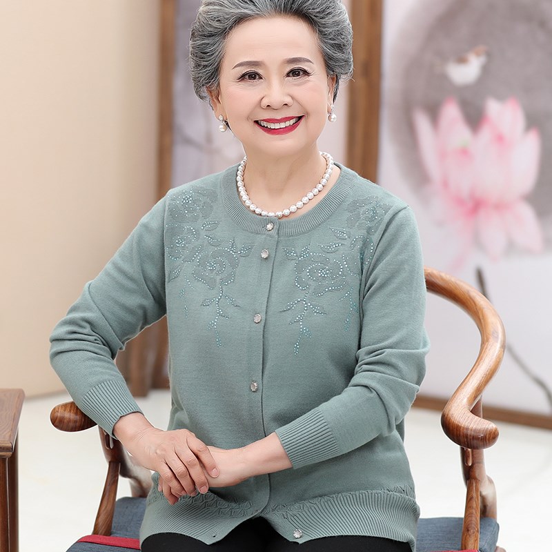 中老年人春装羊毛衫女60岁70妈妈款毛衣外套奶奶太太春秋上衣开衫