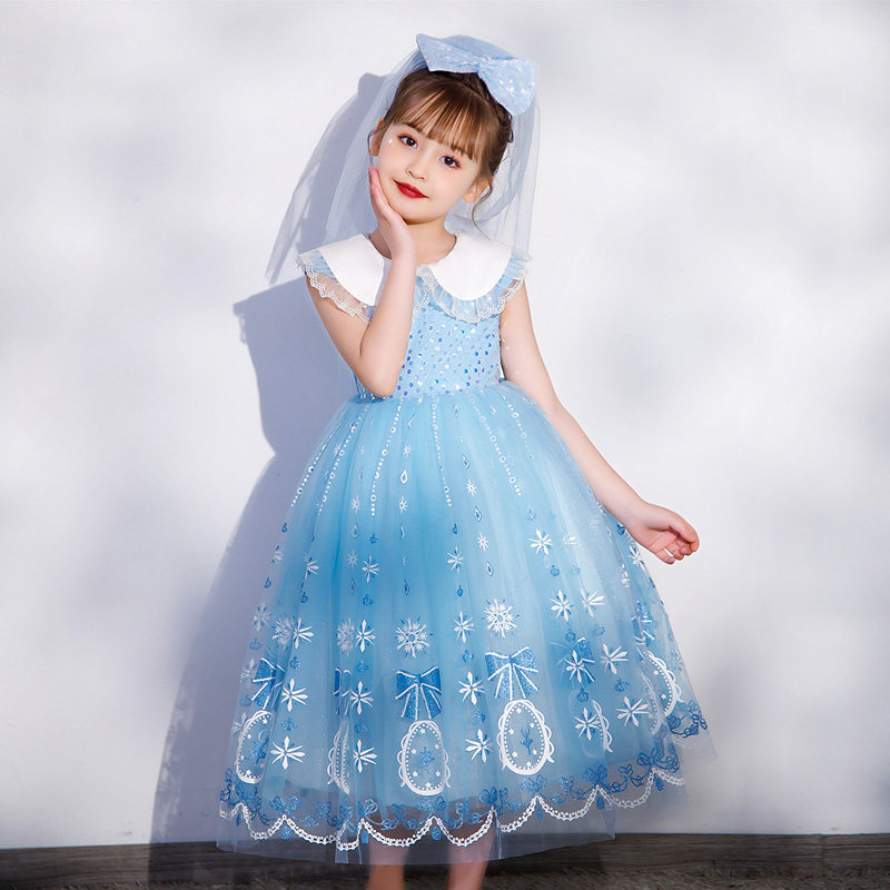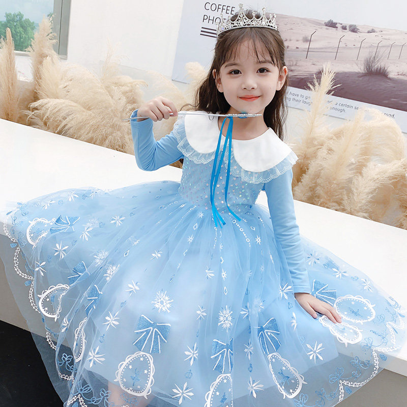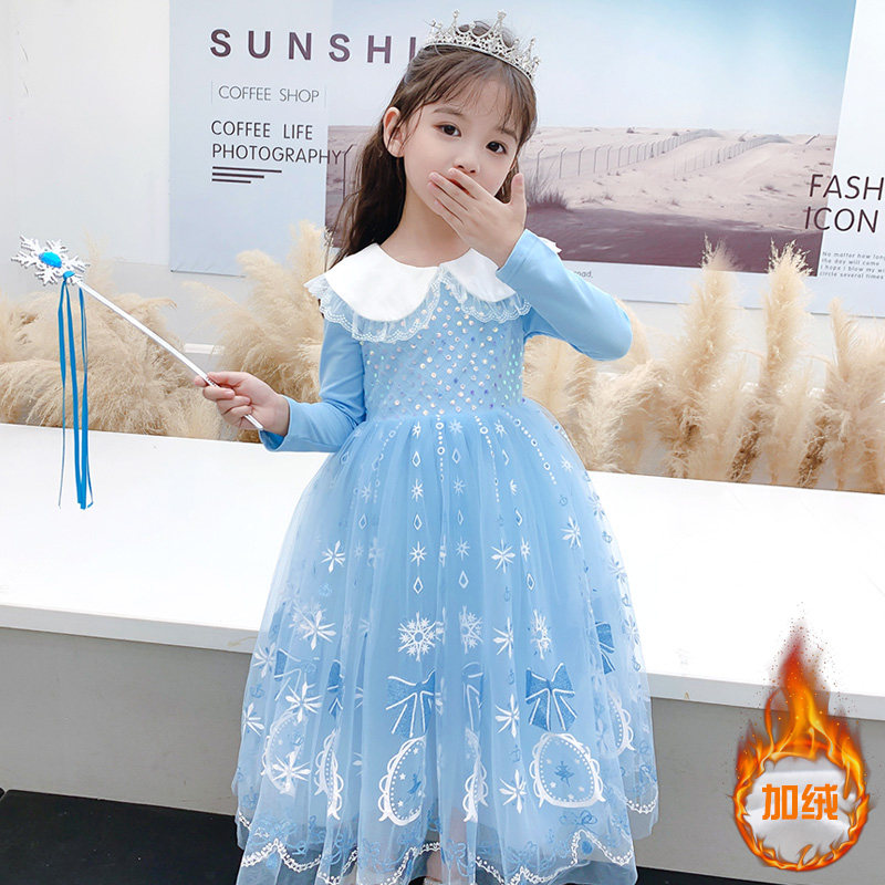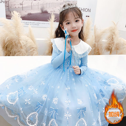 女童艾莎公主裙子冬季新款儿童洋气生日礼服加绒爱莎连衣裙春秋款