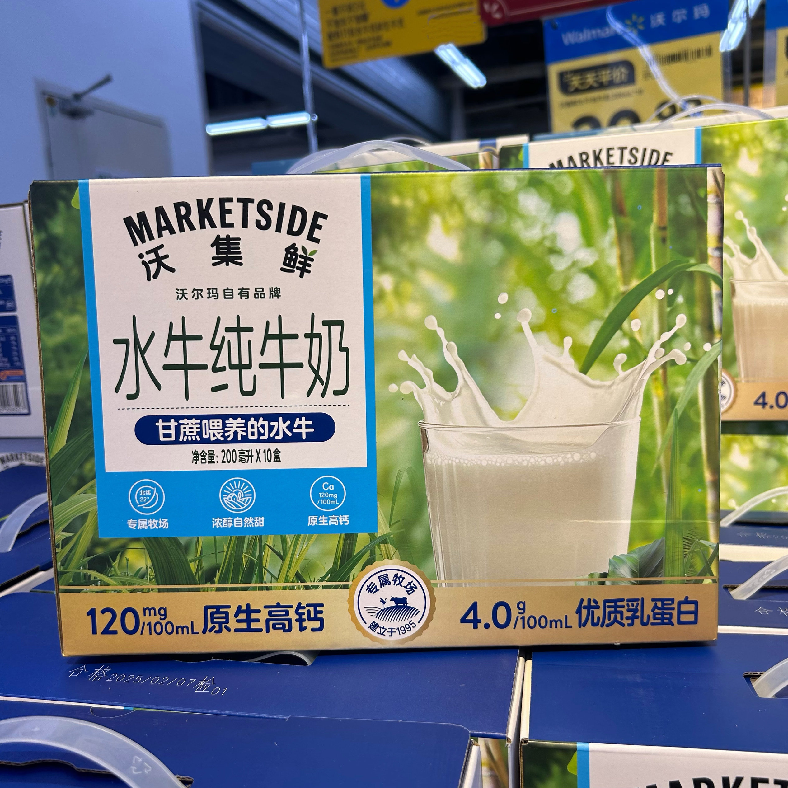 沃尔玛沃集鲜水牛奶纯牛奶儿童高钙奶上班族学生早餐送礼200ml*10
