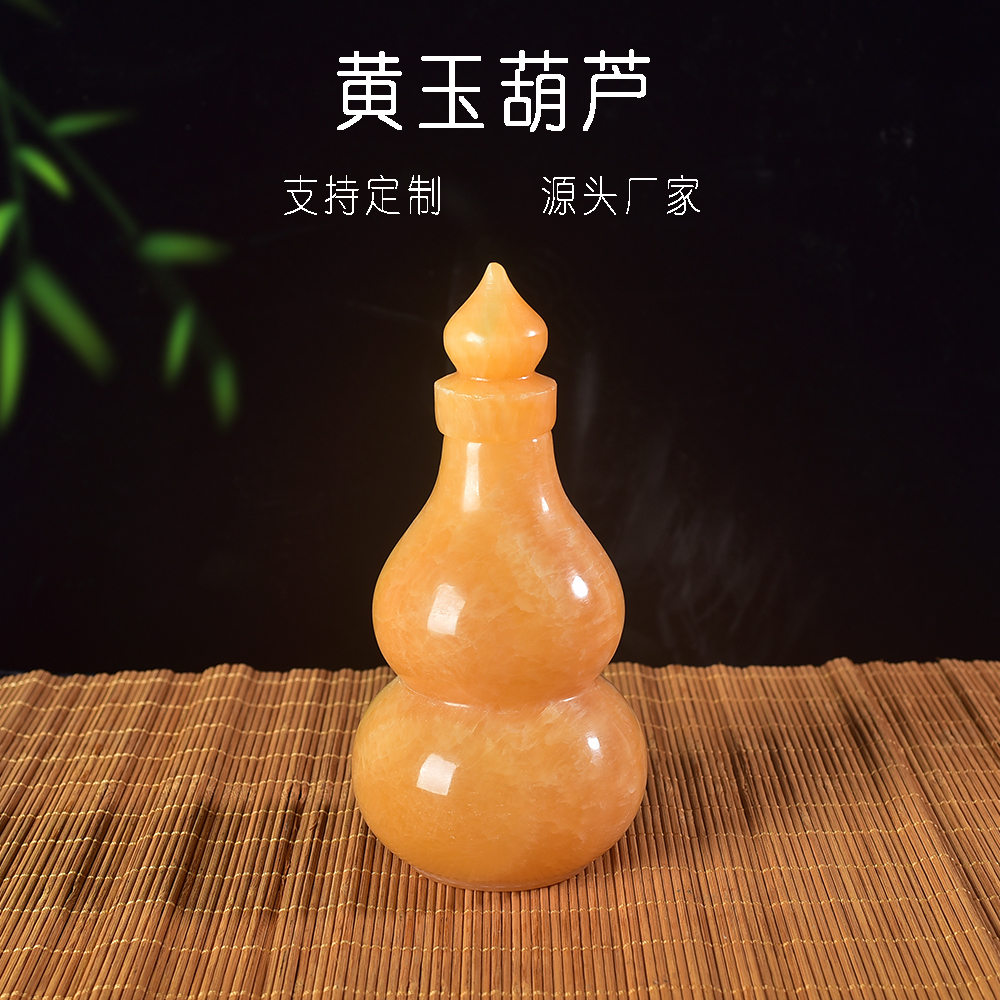 天然黄玉葫芦开口直空心葫芦摆件天然玉石招财纳福家居风水工艺品