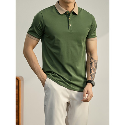 LUUD 男士撞色翻领T恤衫夏季通勤休闲短袖polo衫轻奢气质保罗上衣