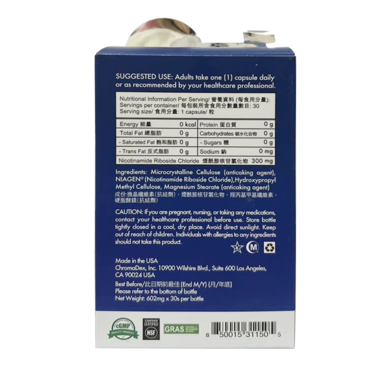 香港屈臣氏美国Tru Niagen乐加欣nad+增强剂胶囊30粒加强版300mg