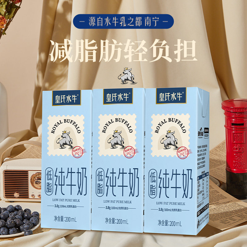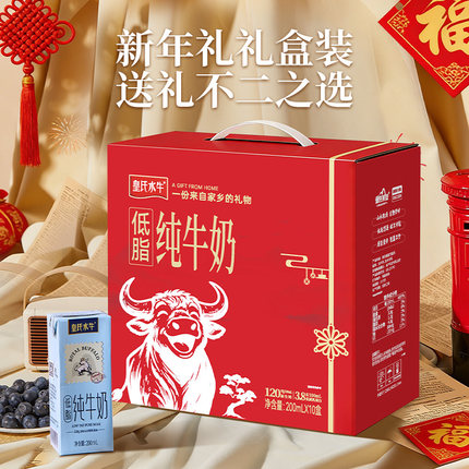 皇氏水牛低脂纯牛奶200ml*10盒新年礼盒3.8g蛋白健康营养早餐送礼