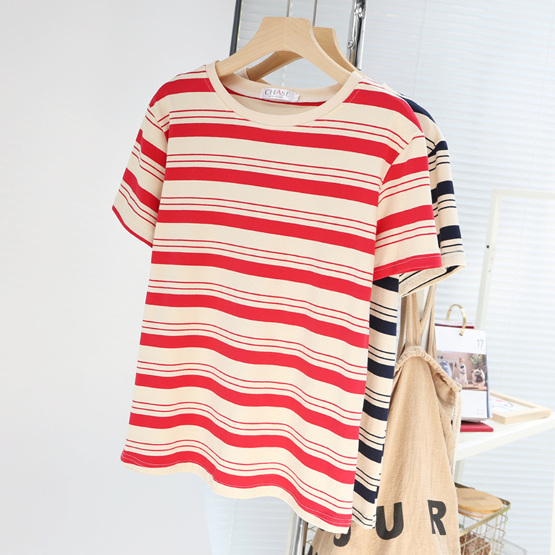 夏装纯棉t恤女短袖2025年新款洋气大码宽松胖mm半袖体恤条纹上衣