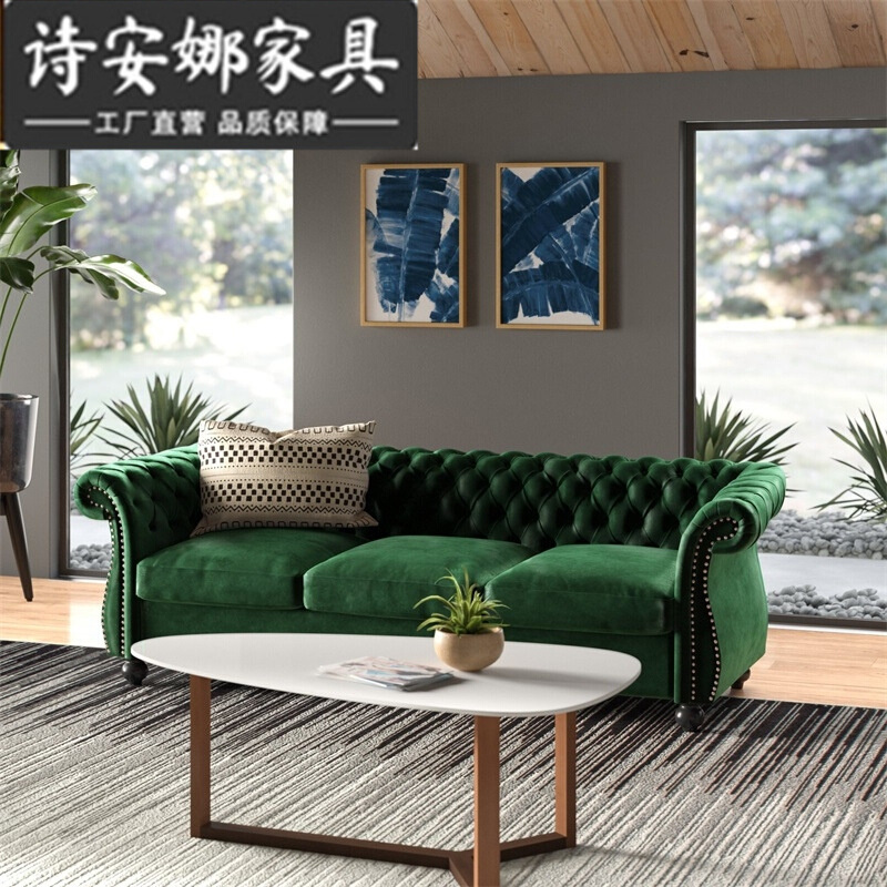 轻奢北欧客厅布艺沙发小户型简约现代复古风美式拉扣设计师三人位