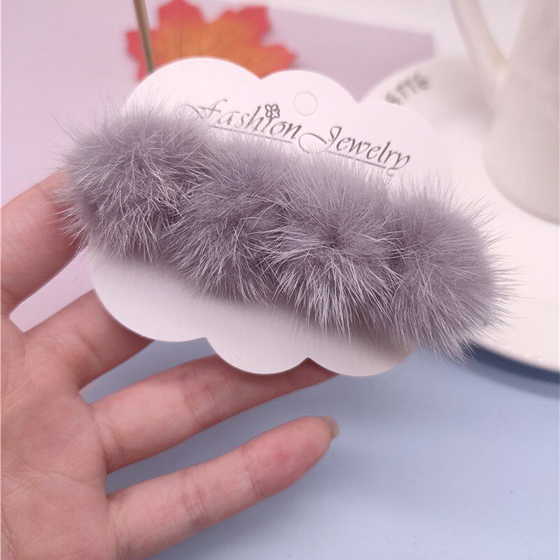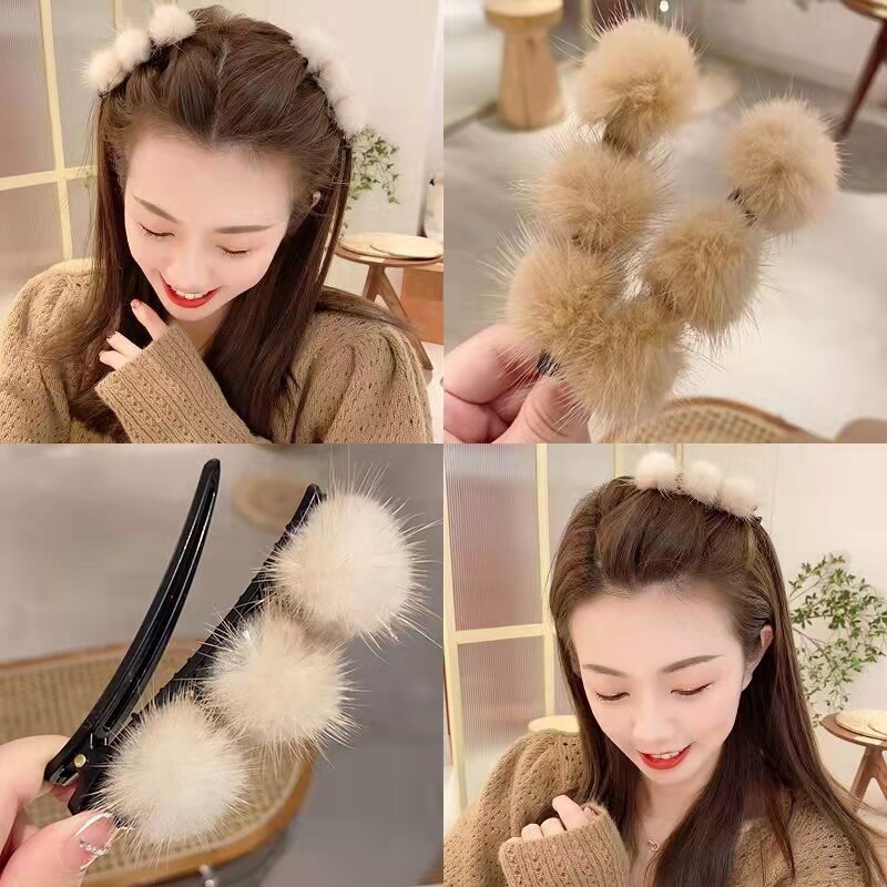 秋冬毛绒球发饰时尚杂志发卡毛毛鸭嘴夹水貂毛绒球弹簧夹边夹顶夹