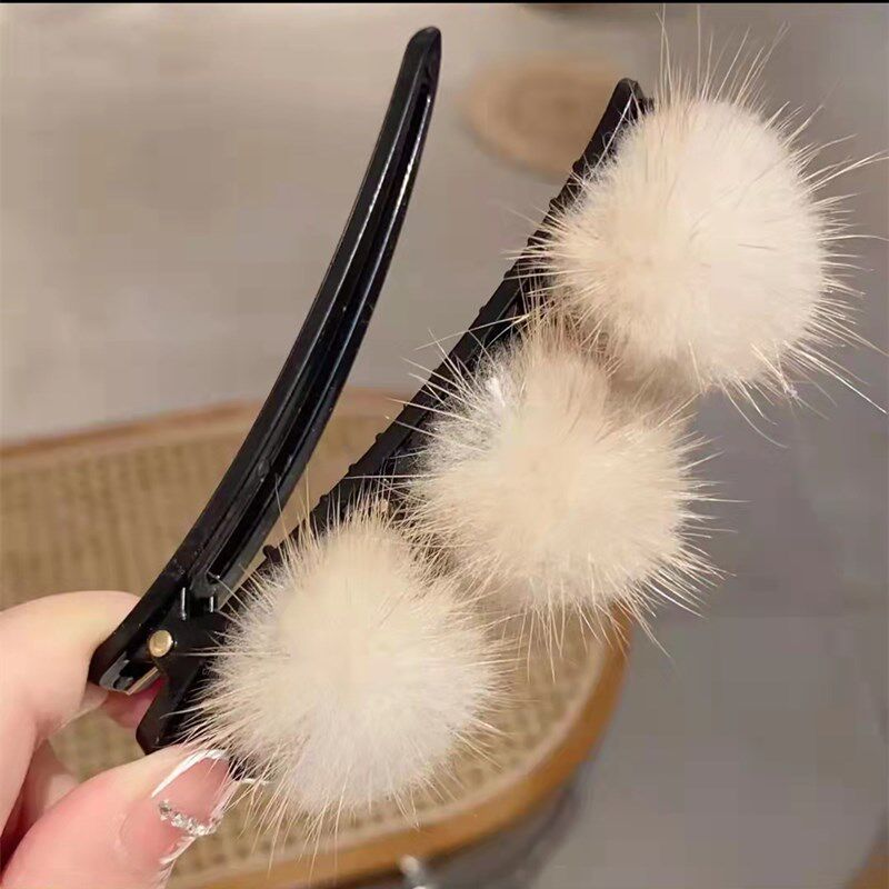 秋冬毛绒球鸭嘴夹鸭嘴夹顶夹
