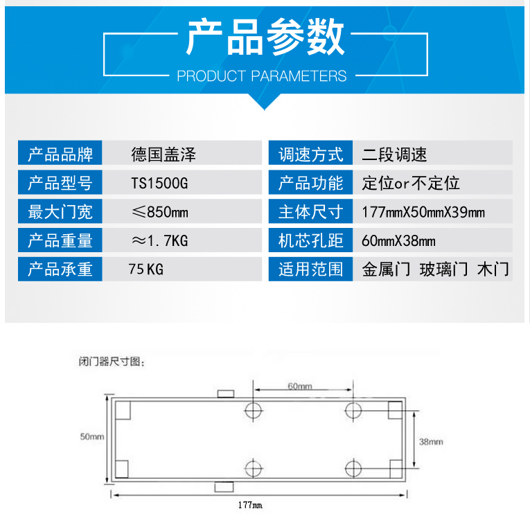 正品德国盖泽GEZE闭门器TS1500G滑尺液压缓冲防火自动闭合关门器