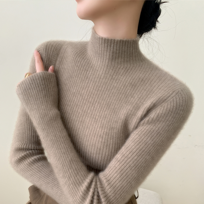 修身半高领山羊绒打底衫纯色抽条