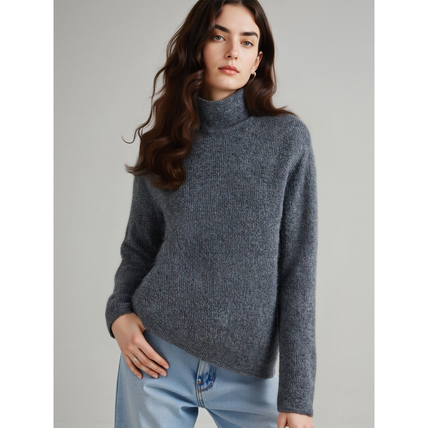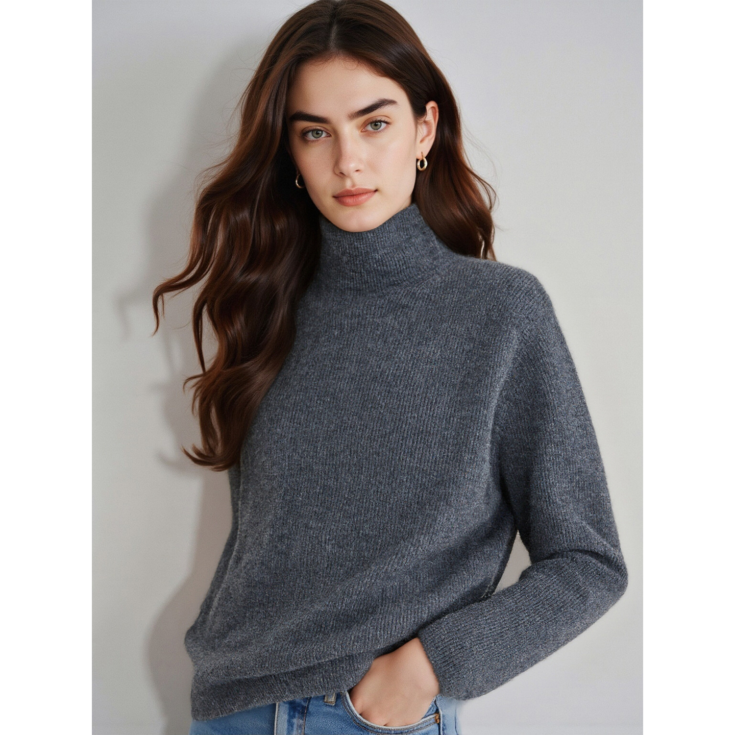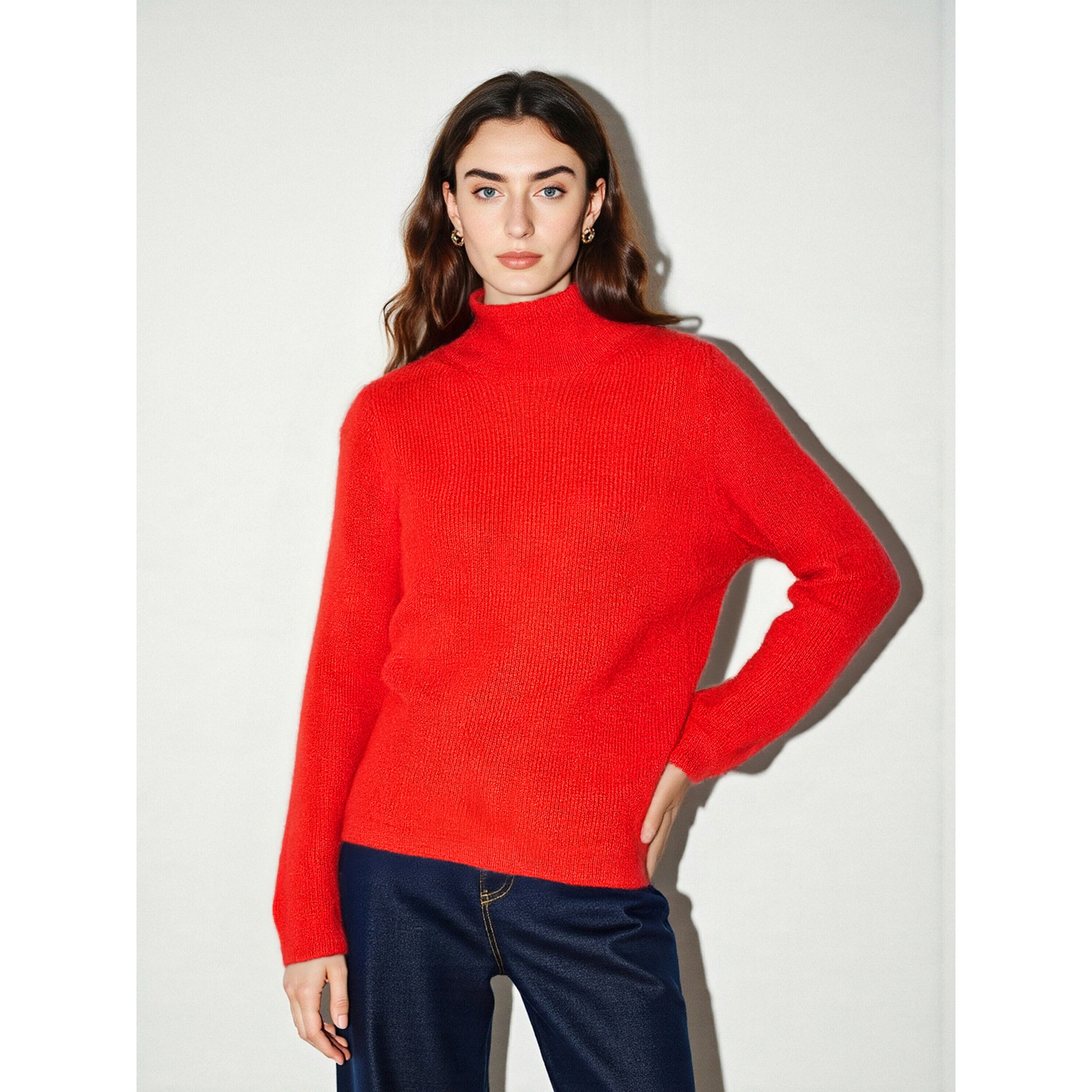 Basic House/百家好中国红100%羊毛针织衫女士秋冬加厚半高领毛衣