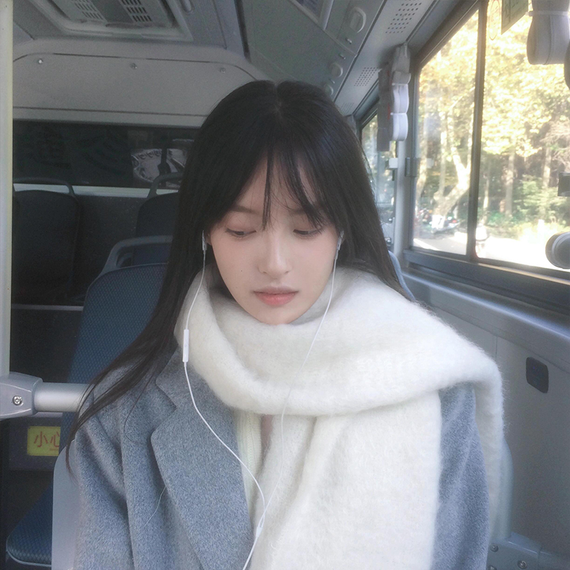 纯白色围巾女士秋冬季2024新款高级感韩系米色围脖百搭保暖氛围感