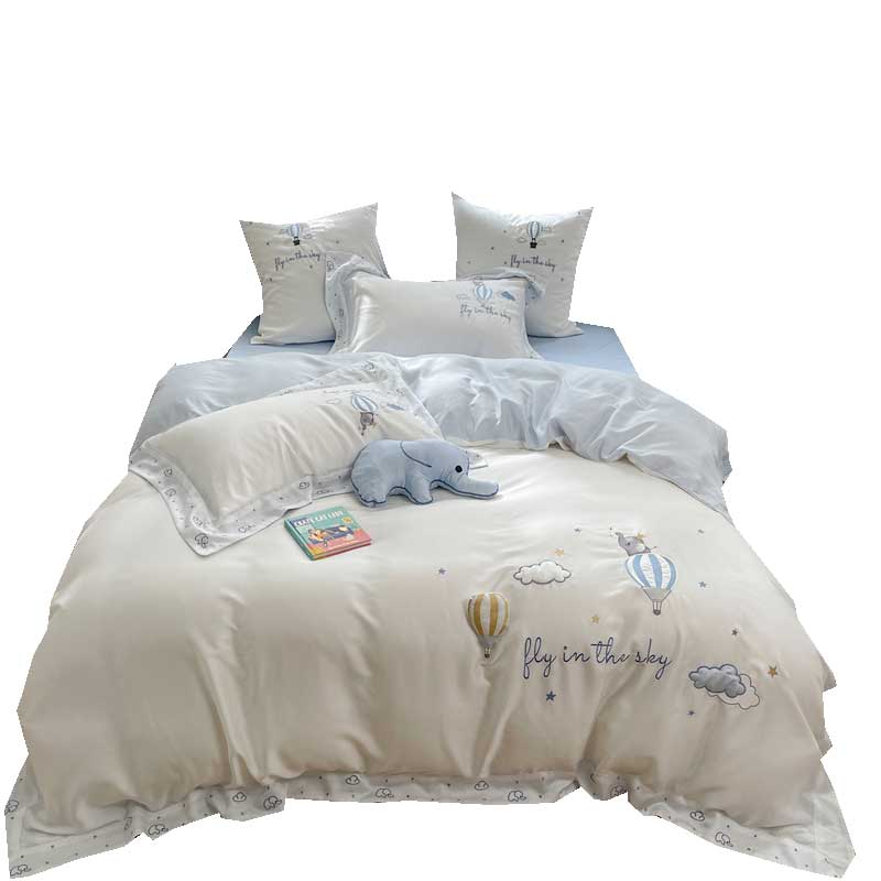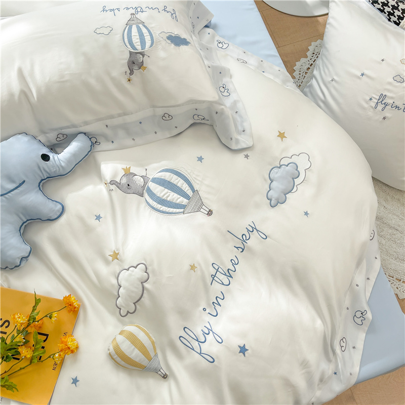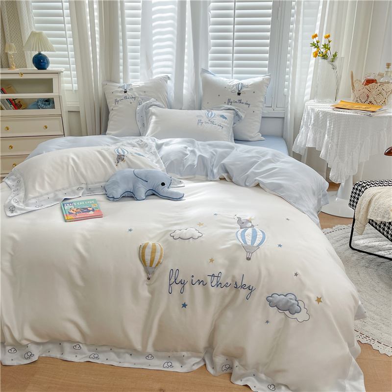 夏季小清新80支天丝四件套立体热气球冰丝被套凉感裸睡床上用品4