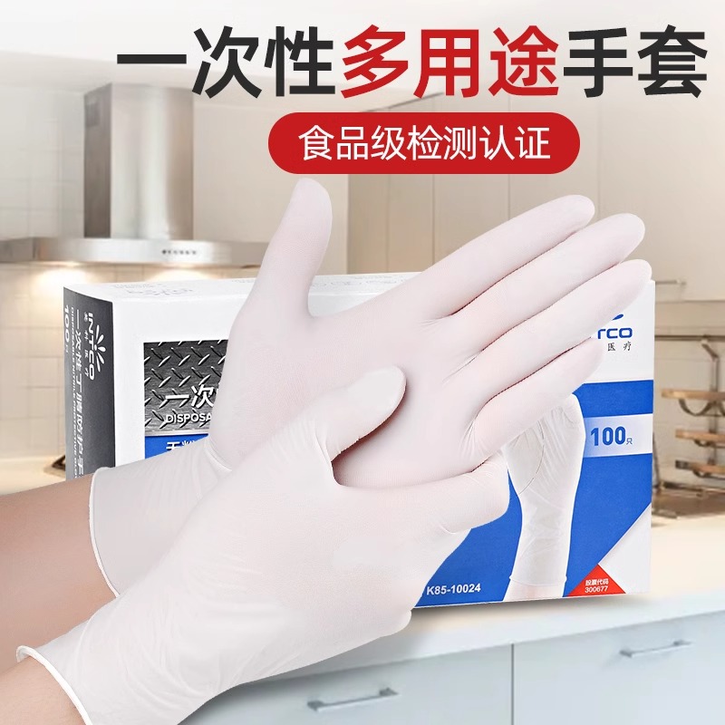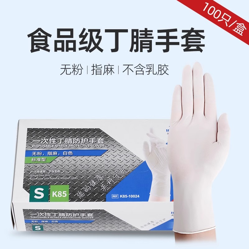 一次性手套白色丁腈乳胶橡胶加厚耐用食品级专用晴家用检查防护