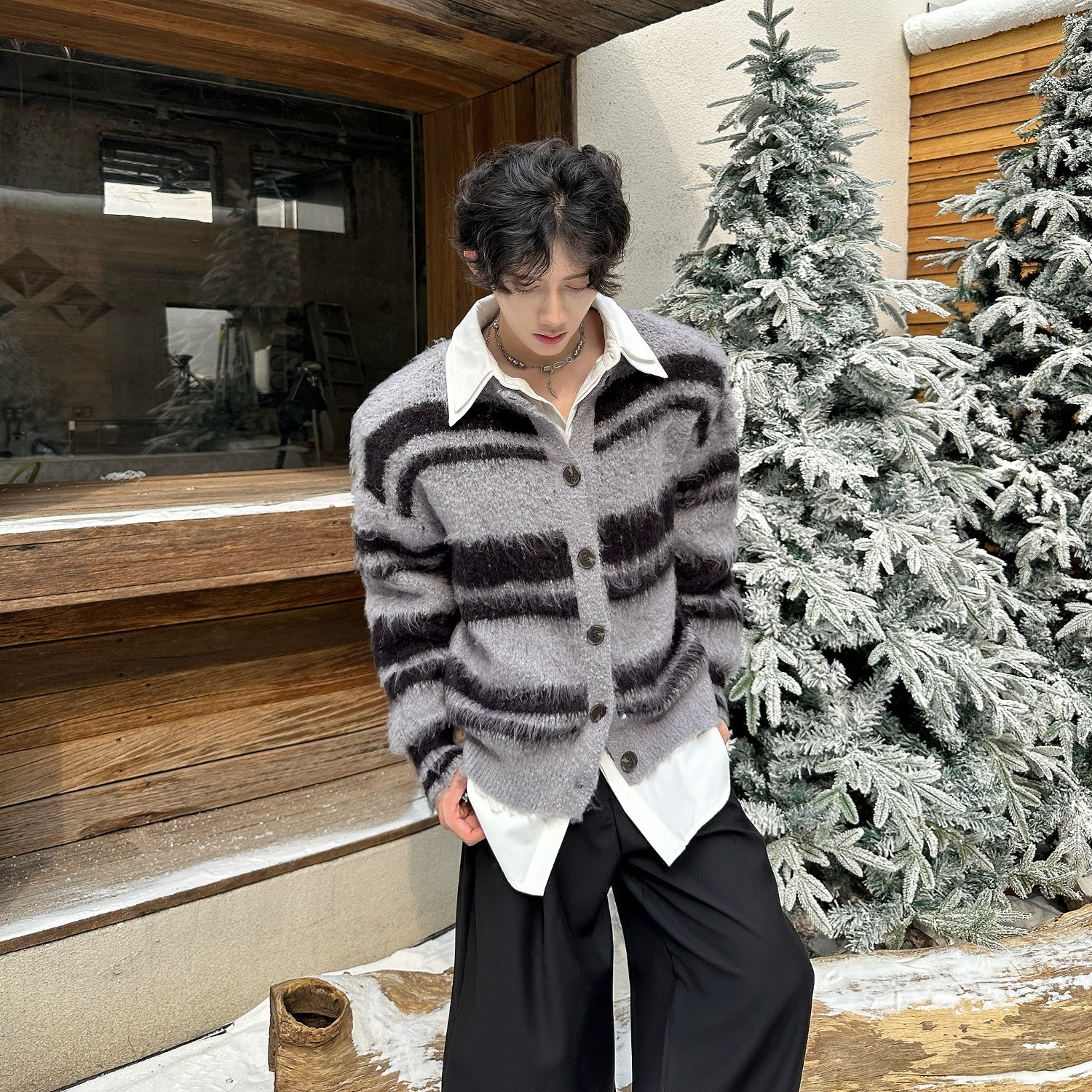 美式复古软糯仿貂毛毛衣开衫外套男2025秋冬季氛围感慵懒风针织衫