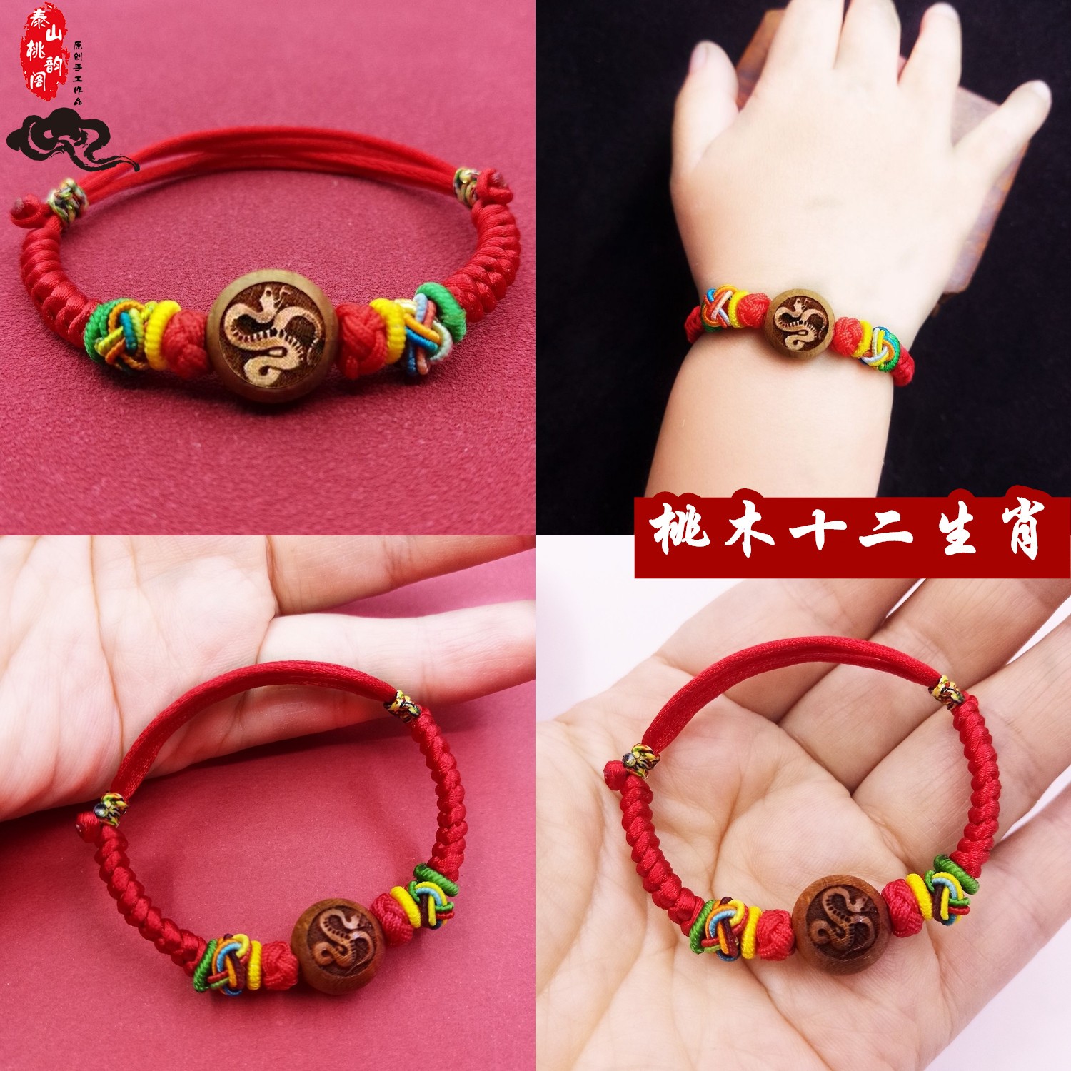 宝宝婴儿童小孩桃核木生肖手链女男平安本命年端午节五彩红绳脚链