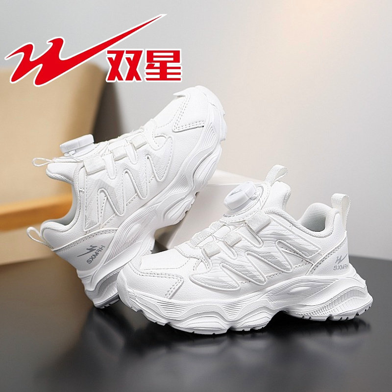 双星童鞋儿童小白鞋男童春秋季新款皮面防水运动鞋女童白色跑步鞋
