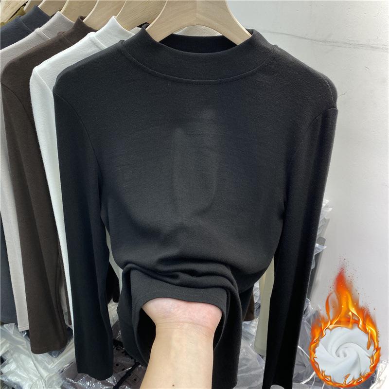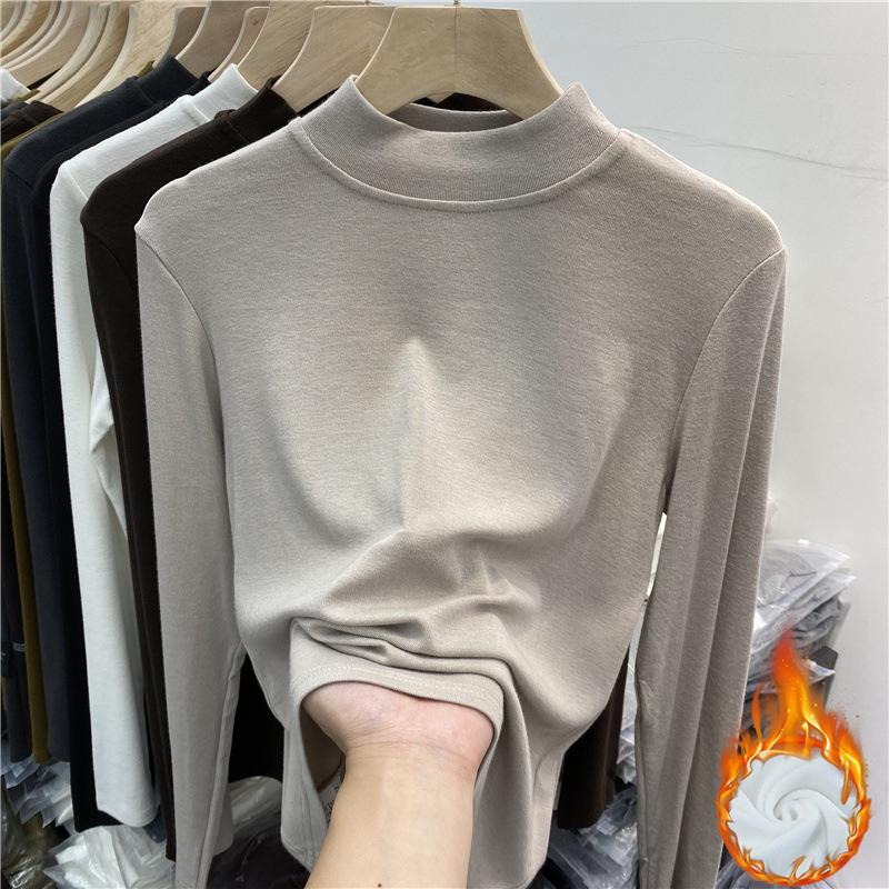 莫代尔女童半高领打底衫秋冬装新款儿童长袖T恤内搭加绒保暖上衣
