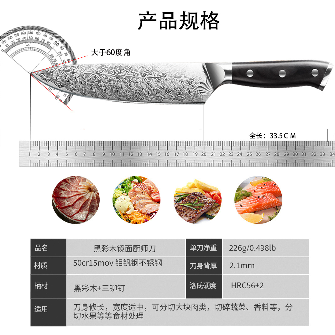 日式厨师刀切牛肉刀切片切肉刀寿司刀鱼生刀大马士革纹钢刀料理刀