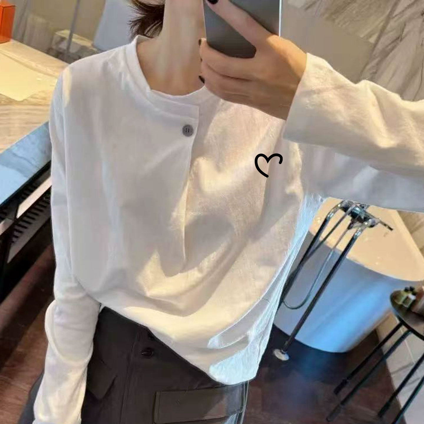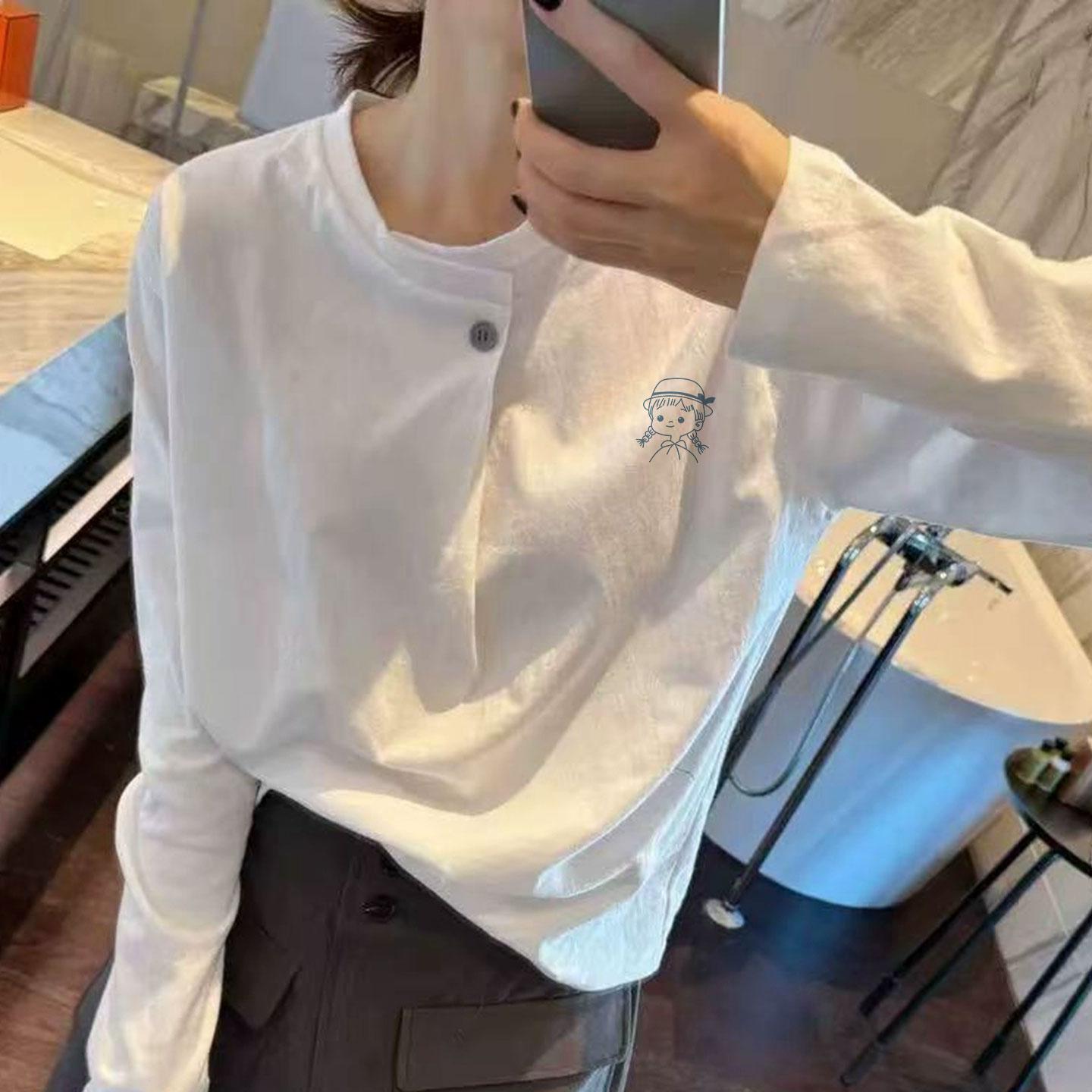 白色纯棉长袖t恤女2025新款内搭打底衫早秋chic别致上衣大码女装