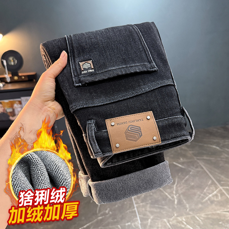 秋冬加绒加厚潮流直筒牛仔裤男士