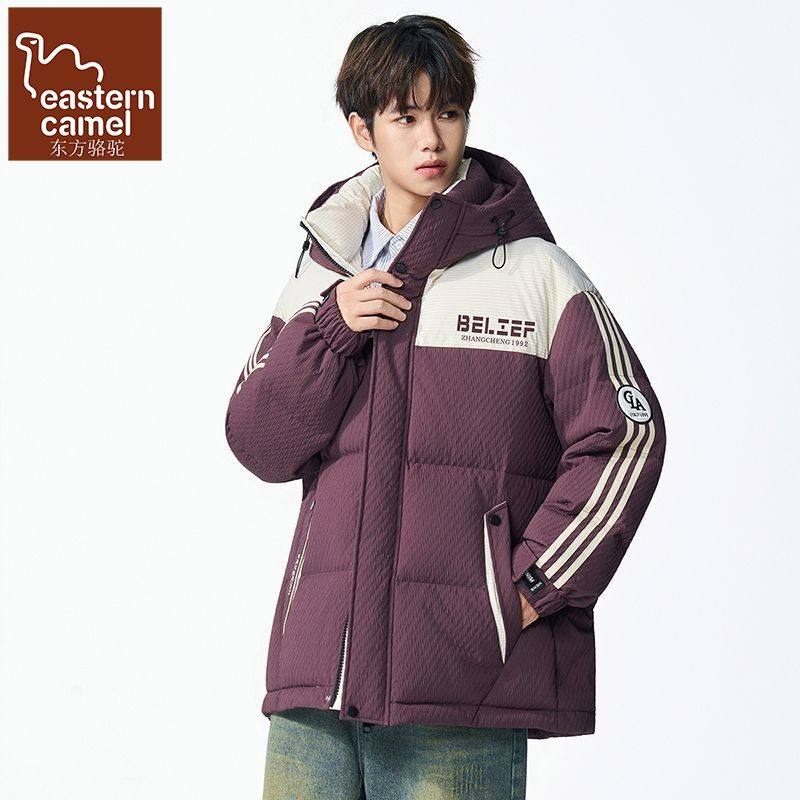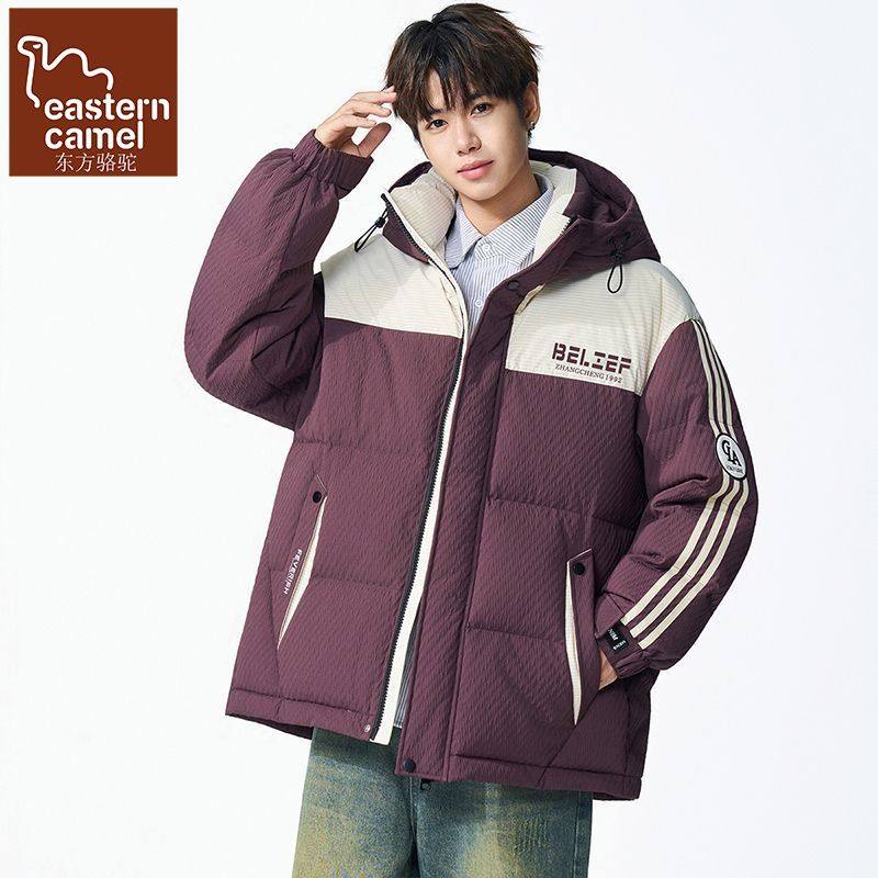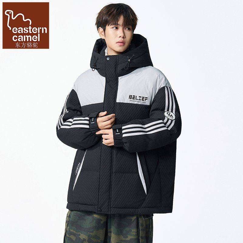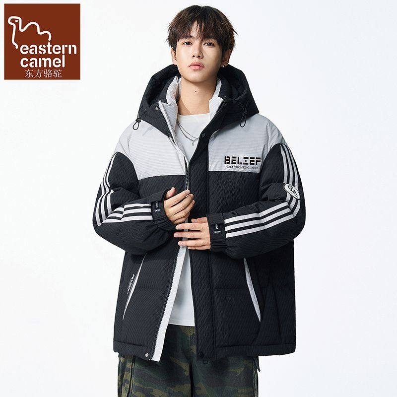 工装羽绒服男士2025年冬季新款保暖连帽外套加厚撞色白鸭绒防寒服