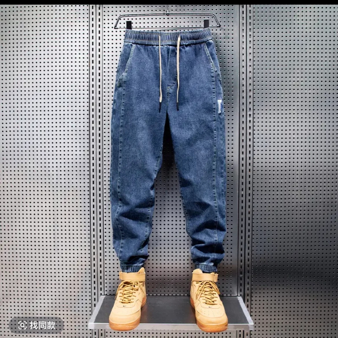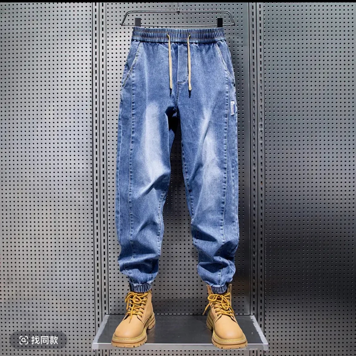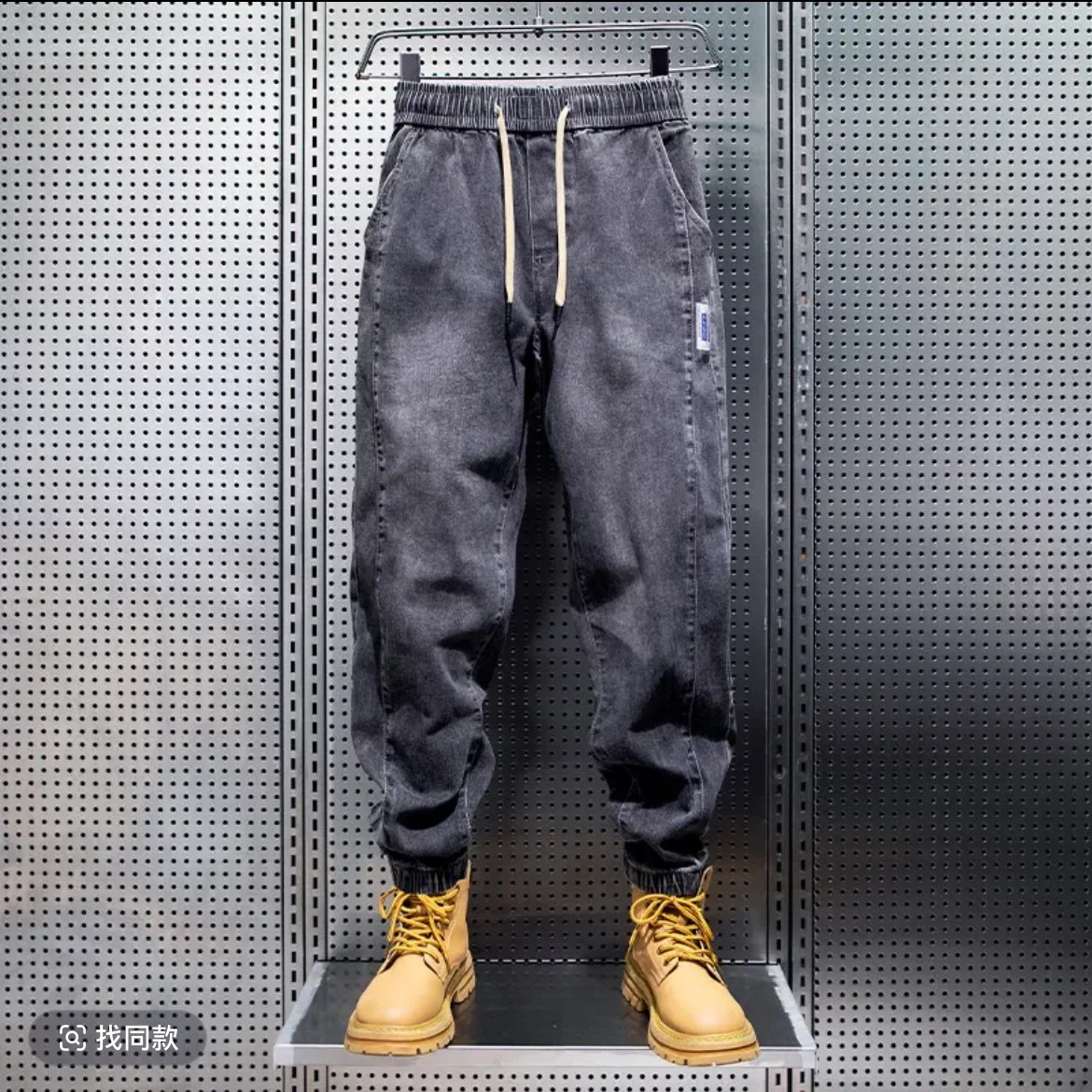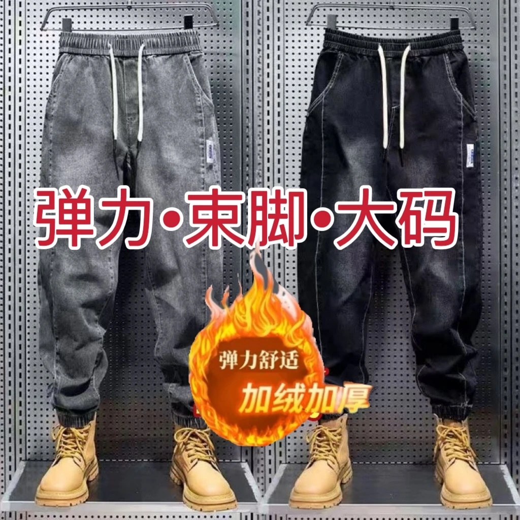 牛仔裤男款春秋束脚宽松工装休闲哈伦裤冬季加绒加厚耐磨工作裤男