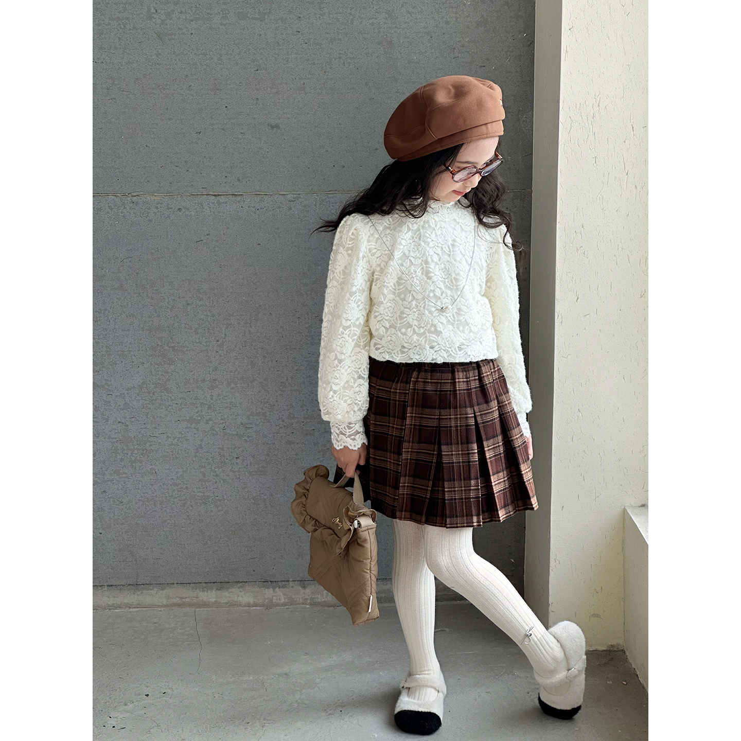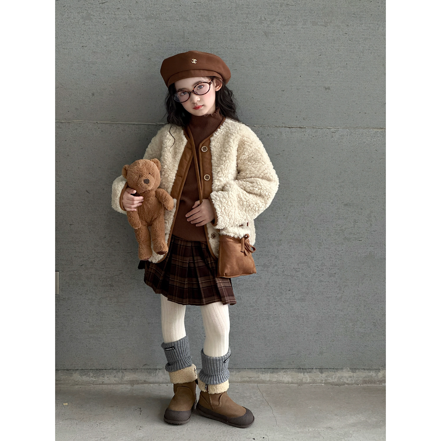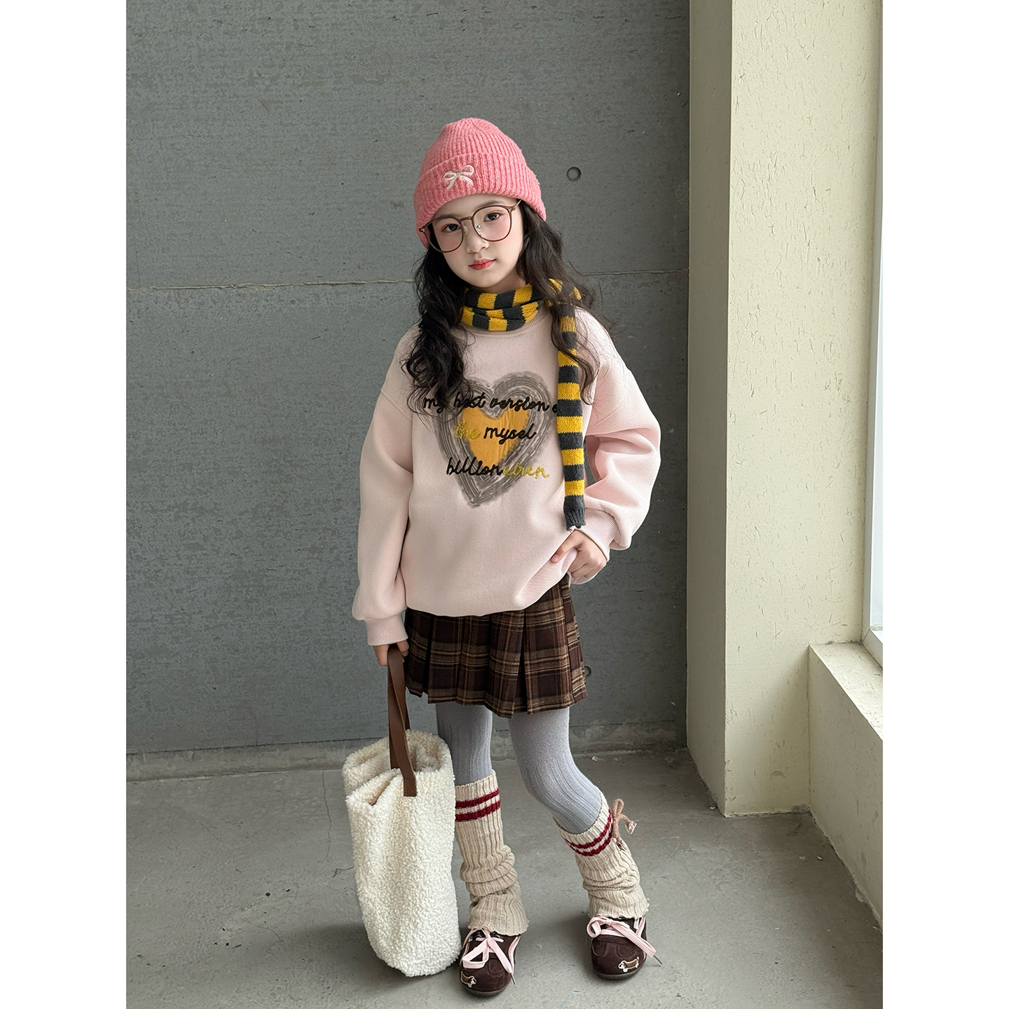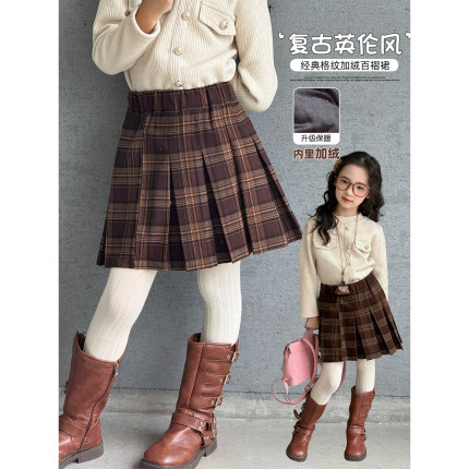 女童半身裙2025冬季新款儿童加绒格子百褶裙小女孩韩版洋气短裙子