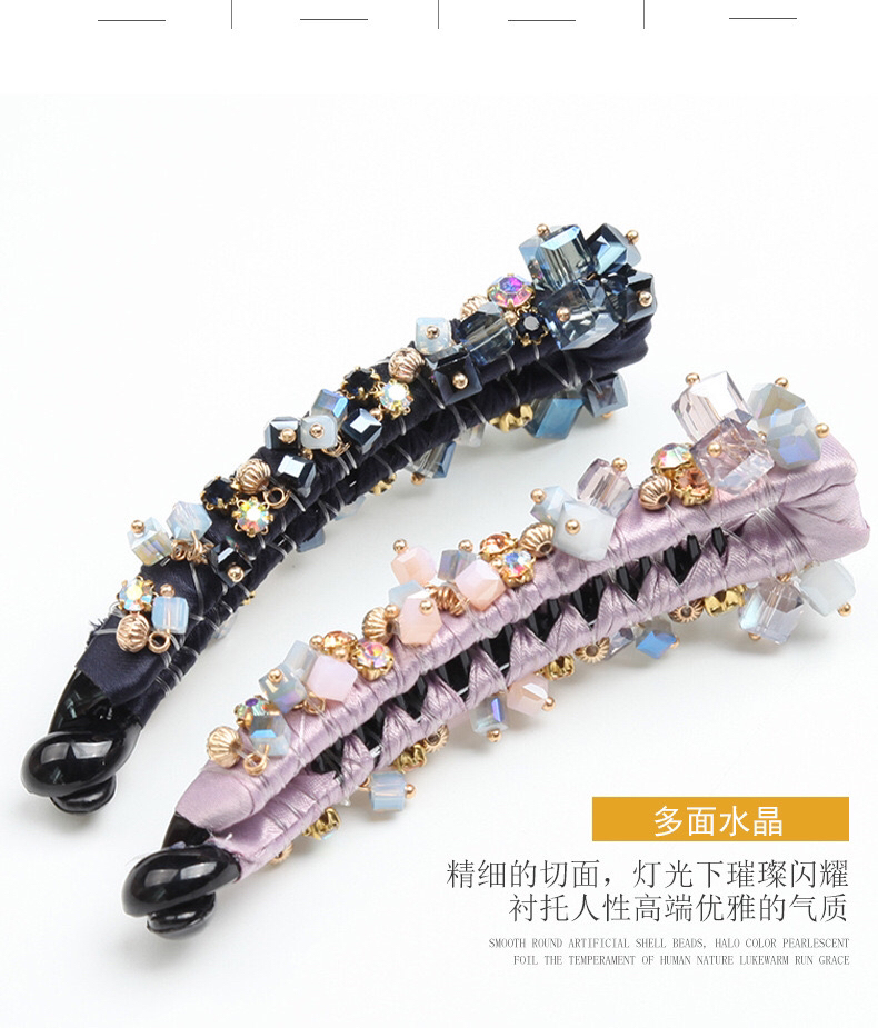 韩版东大门新款百搭香蕉夹水晶发饰竖夹水钻布艺马尾夹盘发发夹女