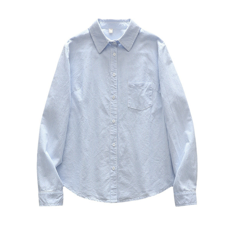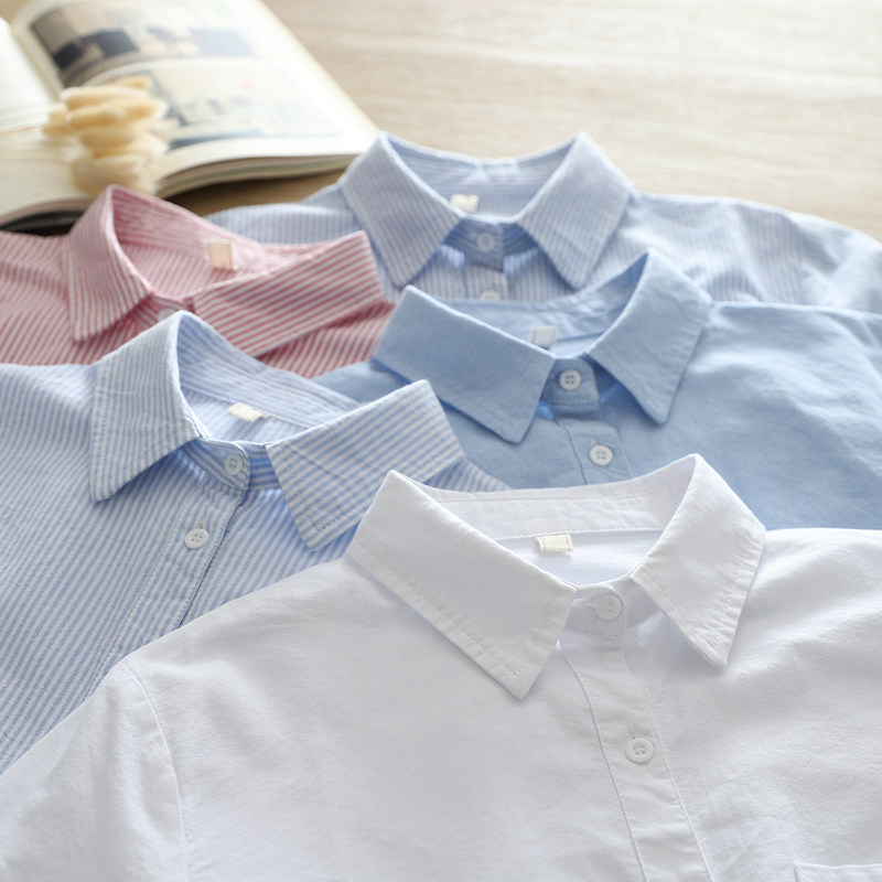 纯棉牛津纺条纹衬衫女春秋季新款长袖小清新学生休闲打底日系衬衣