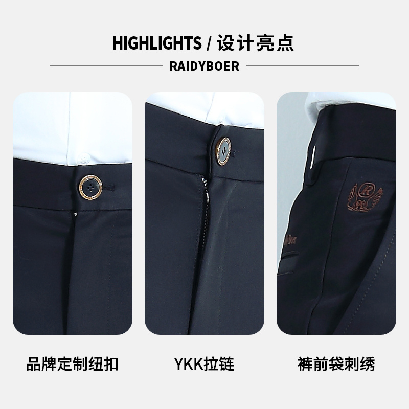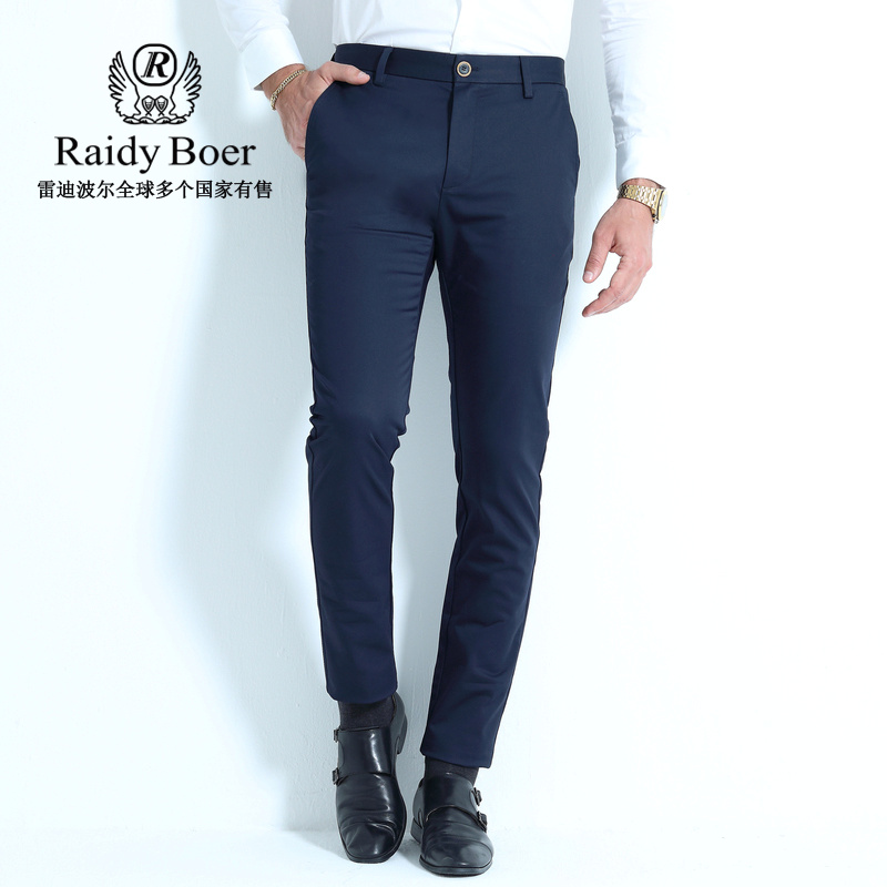 雷迪波尔男装休闲裤春夏季新品商务休闲刺绣修身男士基础中腰长裤
