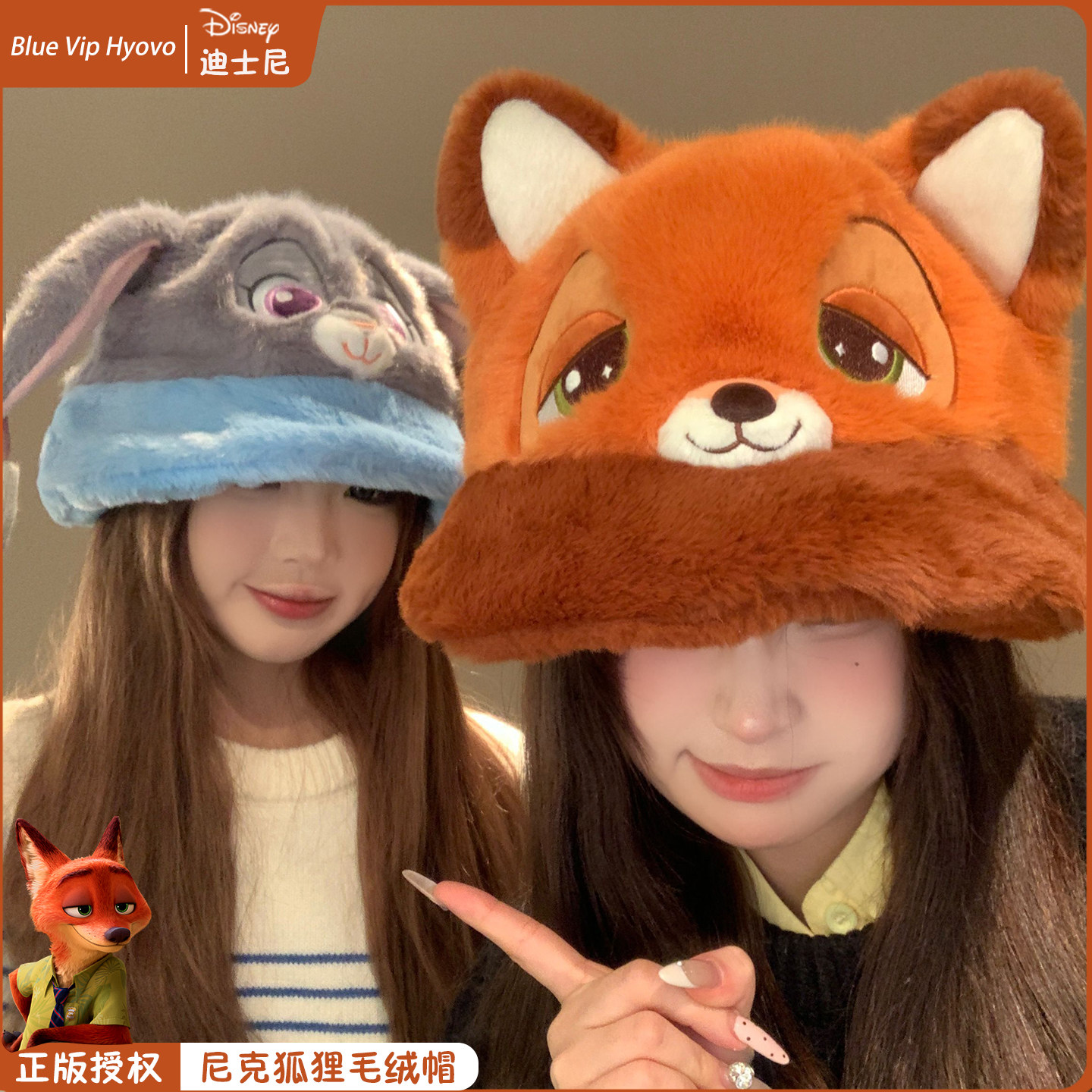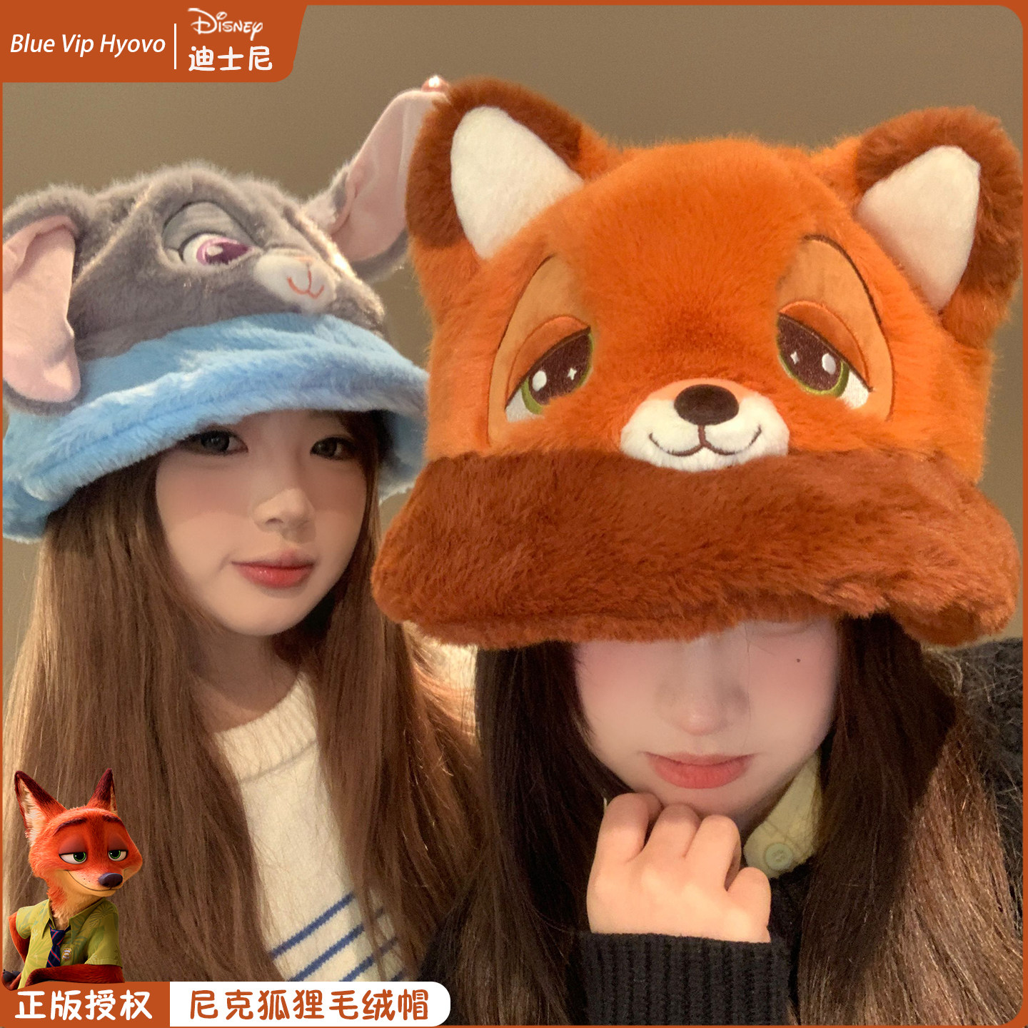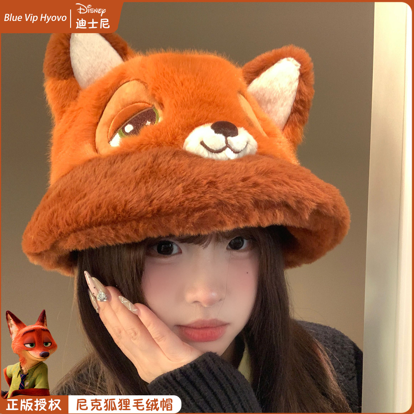 正版迪士尼尼克狐狸毛绒渔夫帽女冬季保暖情侣可爱显脸小护耳帽子