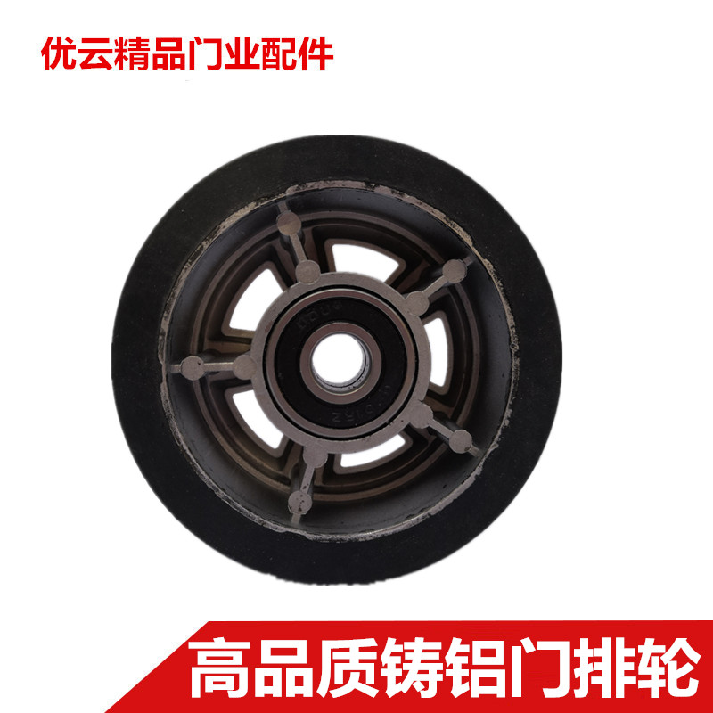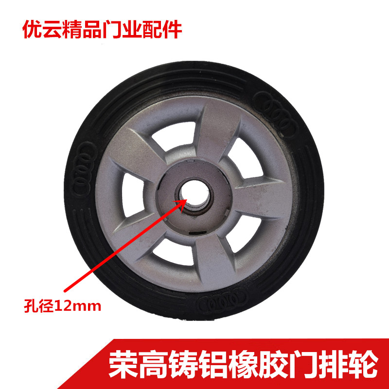 荣高电动伸缩门铝芯橡胶小轮子95铸铝耐磨橡胶轮伸缩门12孔小轮子