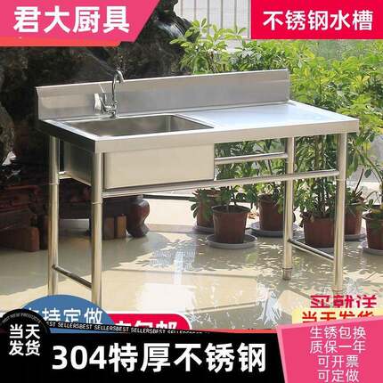 304不锈钢水槽厨房支架商用饭店洗衣台洗刷盆洗菜盆洗碗池带平台