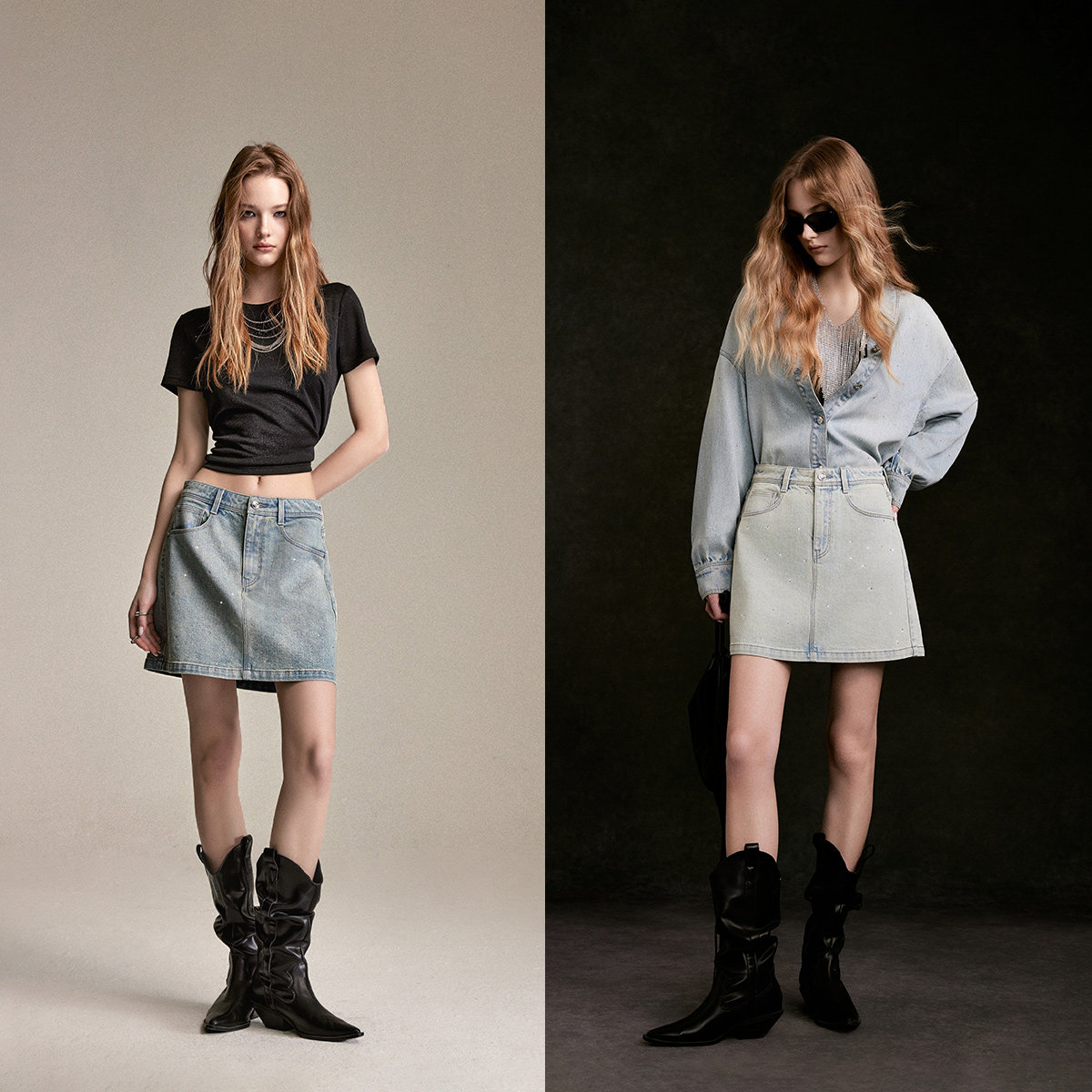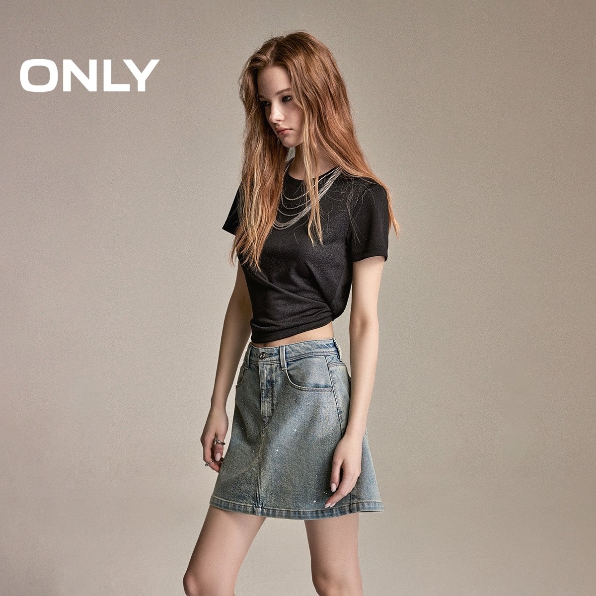 ONLY2026春季新款辣妹风闪钻装饰A字显瘦水洗牛仔短裙半身裙女