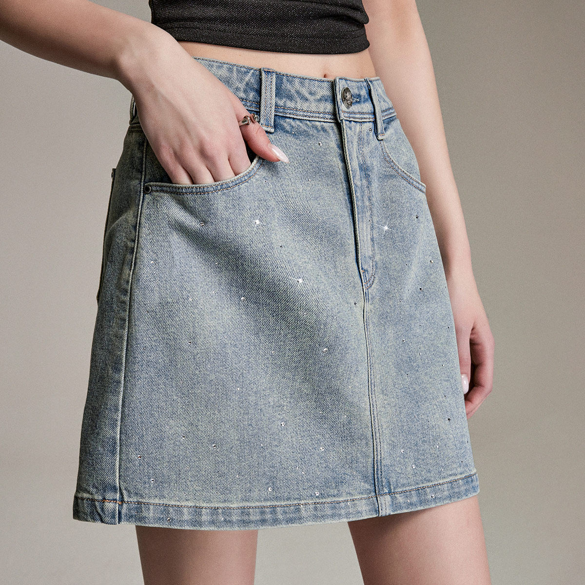 ONLY亮钻装饰A字牛仔短裙半身裙