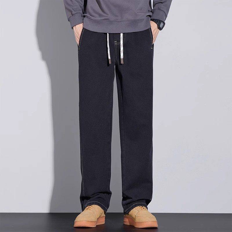 Yishion以纯官方时尚正品加绒加厚牛仔裤男生秋冬季阔腿裤2025新