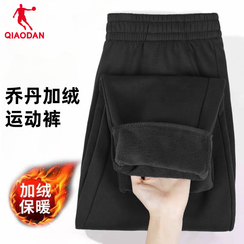 乔丹加绒运动裤男长裤冬季经典黑色加厚保暖棉裤宽松束脚休闲卫裤