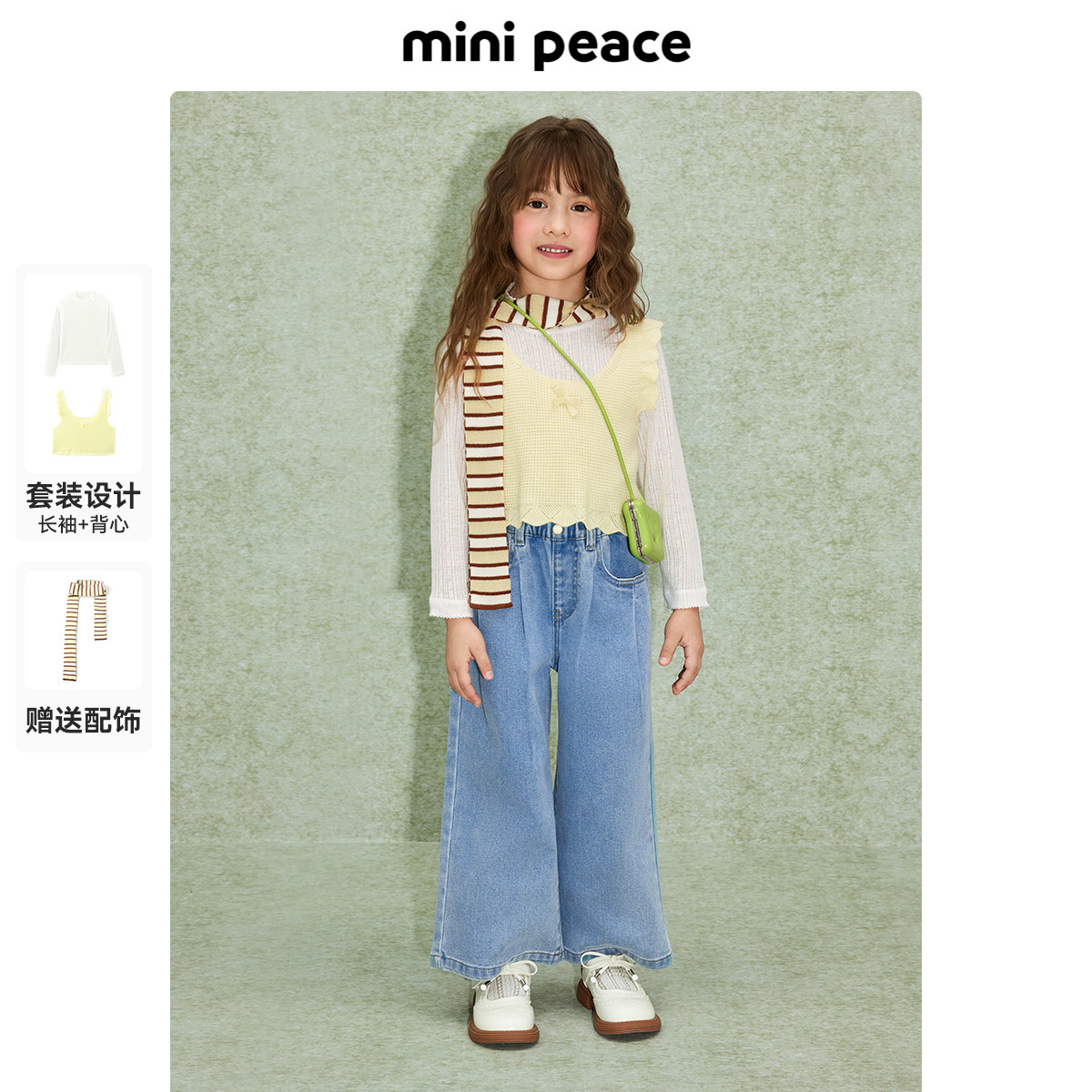 【专柜同款】MINIPEACE太平鸟童装女童套装背心长袖T恤两件套秋装