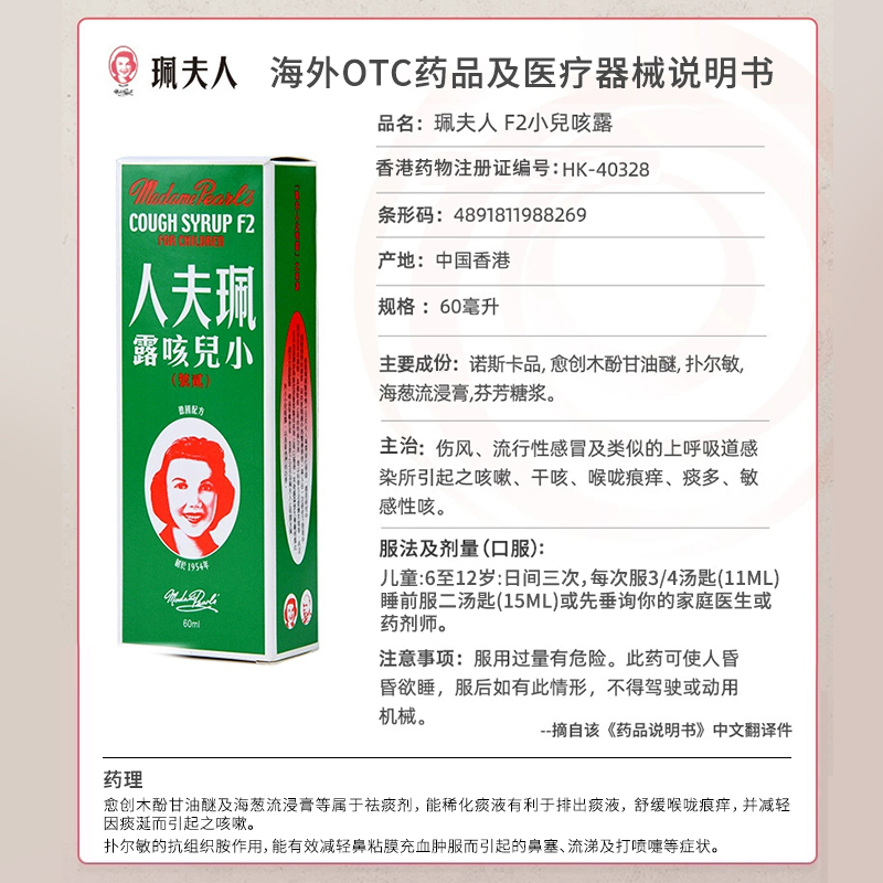 中国香港进口珮夫人成人止咳水流行感冒咳嗽药化痰止咳露干咳糖浆