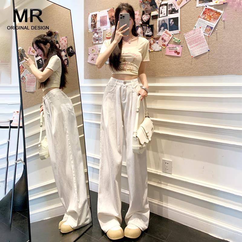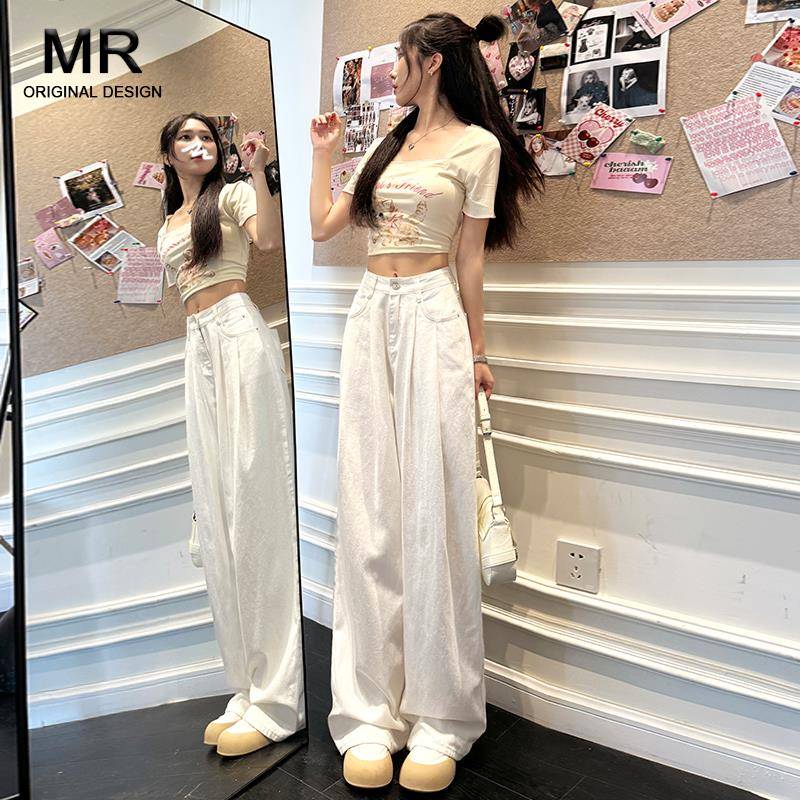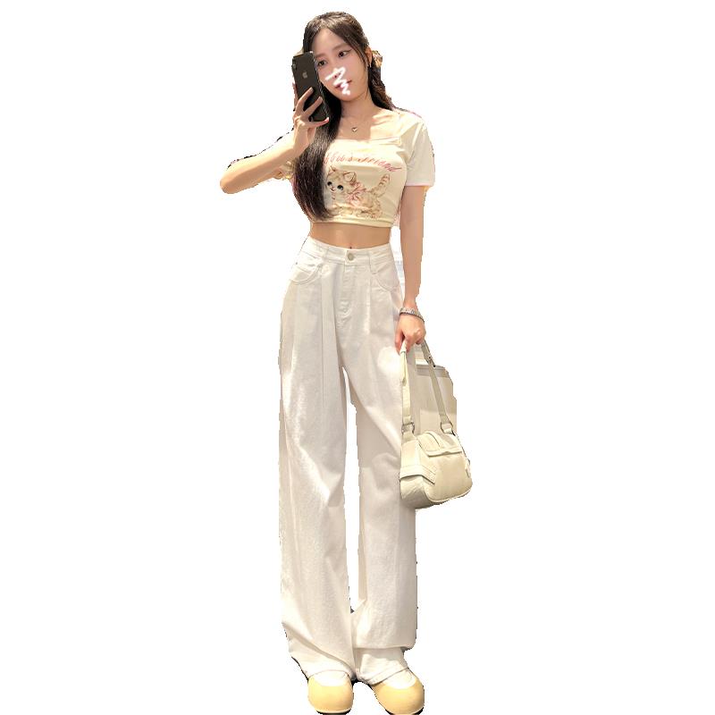 白色阔腿天丝牛仔裤女2025夏季新款宽松薄款垂感小个子直筒长裤子