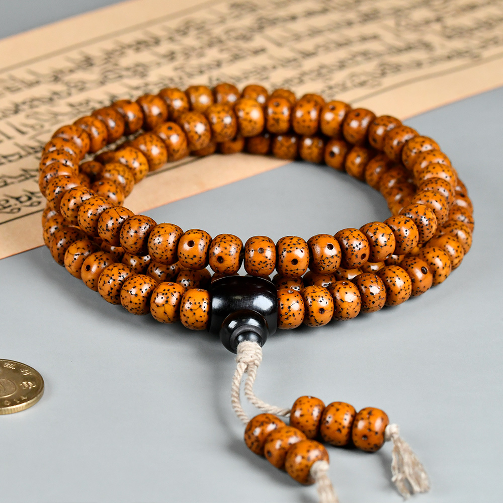收藏级开片玉化包浆老星月菩提108颗藏式手串念珠男女文玩佛珠
