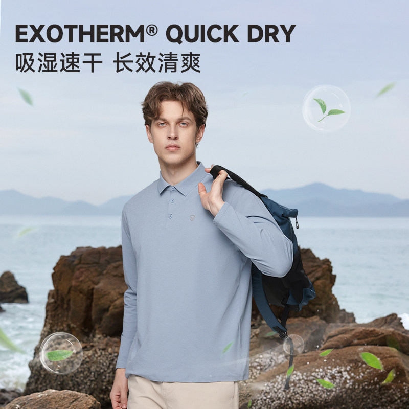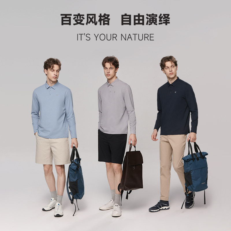 诺诗兰长袖t恤男士户外翻领春夏吸湿透气运动polo衫NTSET5216E