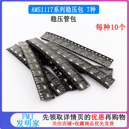 稳压管包AMS1117-3.3V 1.2V 1.5V 1.8V 2.5V 5V ADJ 共70个SOT223