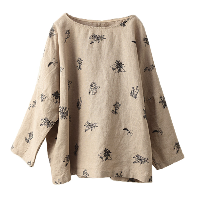 园园美衣复古100%汉麻勾线衬衫女气质圆领套头衫文艺宽松文艺衬衣